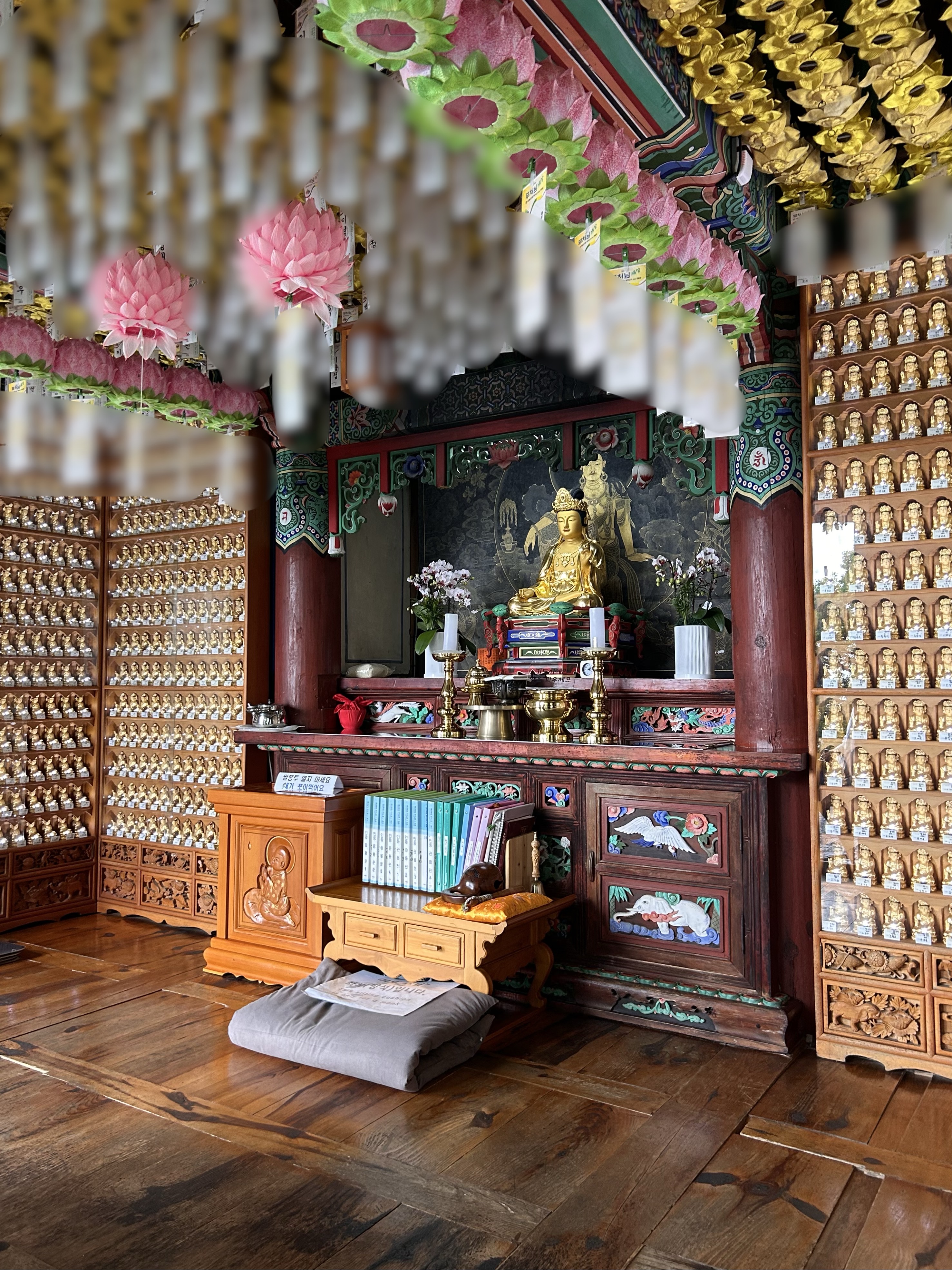 대웅전 안쪽 모습인데 몇몇분들이 간단한 기도도 드리고 계셨고 천장에는 소원을 듬뿍 담은