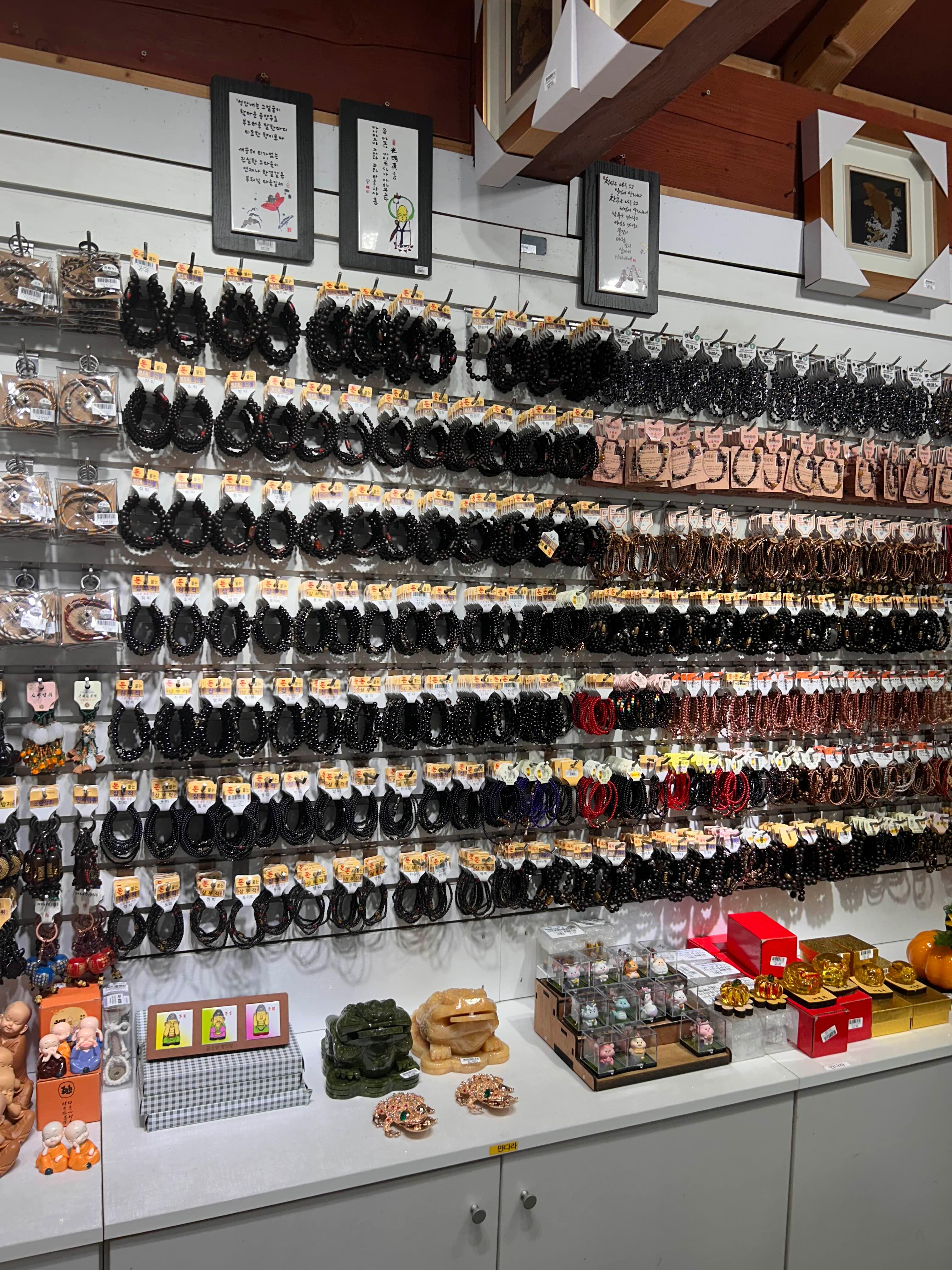 대웅전 바로옆에 기념품 가게들이 두곳 있는데 한곳에서 지인이 열심히 팔찌 구경하길래 저도 한참을 보다가 하나 장만했네요.