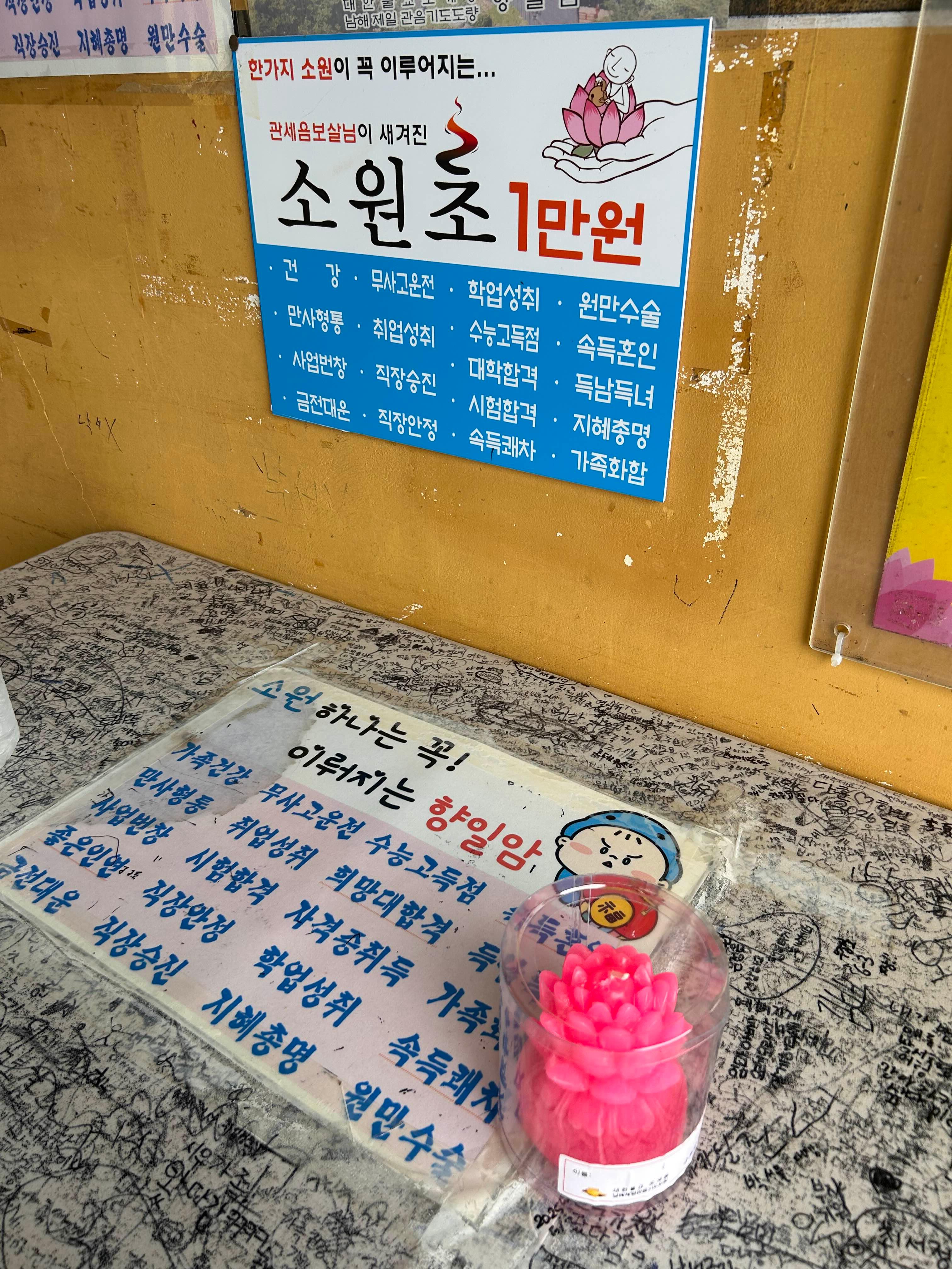 결제하면 바로 초를 주시는데 겉에 이름과 소원하는 바를 적으면 됩니다.
