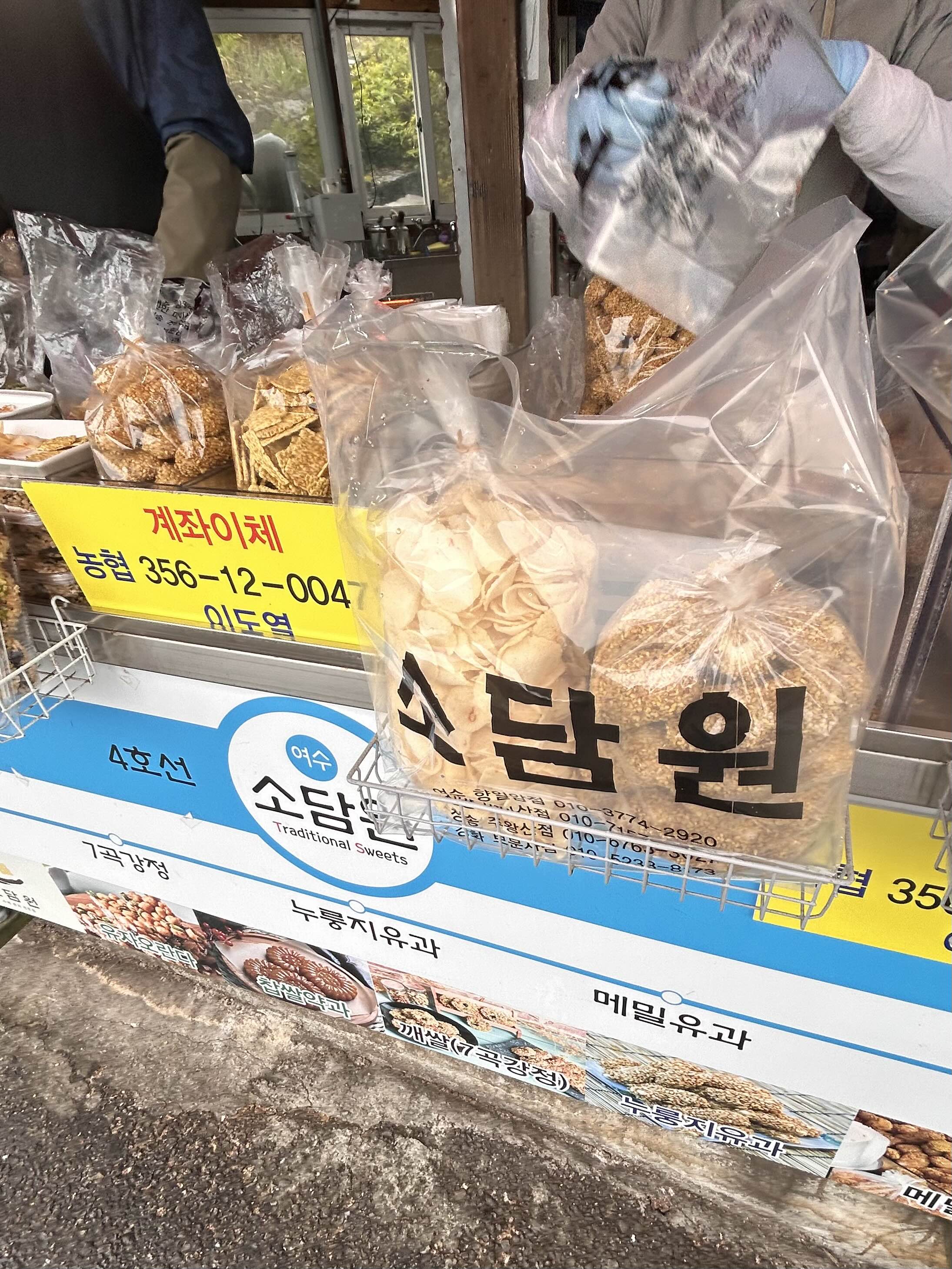 여기서 샘플로 맛보다가 매밀 유과와