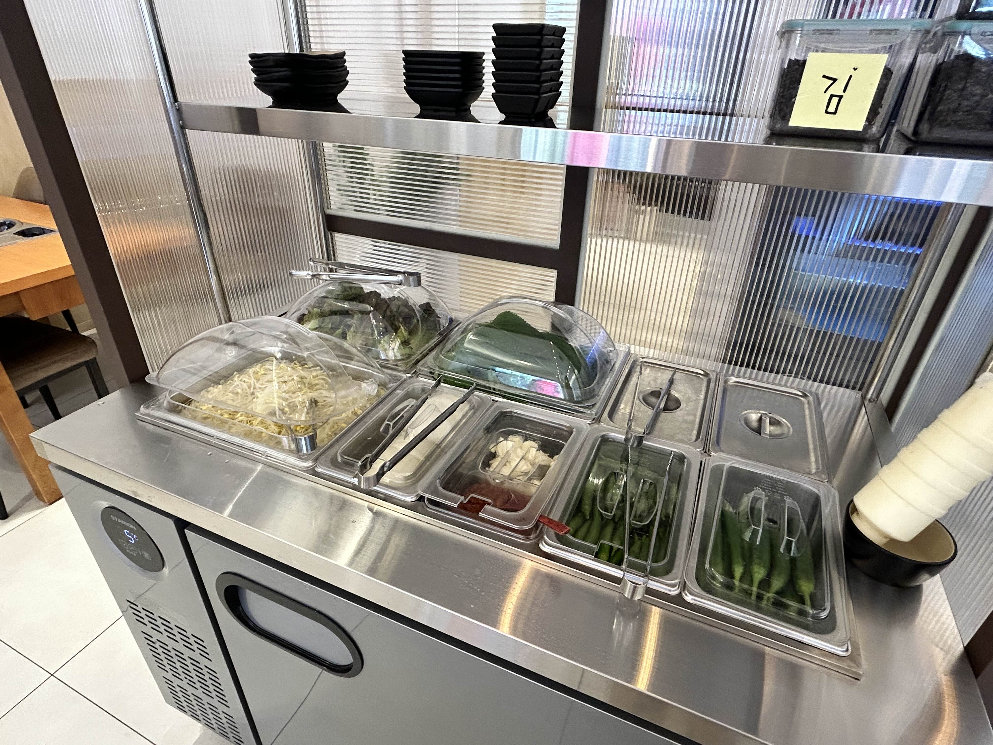 화장실 가는 길목에 야채 셀프바 같은곳이 있습니다. 셀프바가 맞는지 모르겠는데 싱싱한 야채들이 한가득 들어있어서 추가해서 먹으면 좋겠구나 라는 생각이 들었습니다.