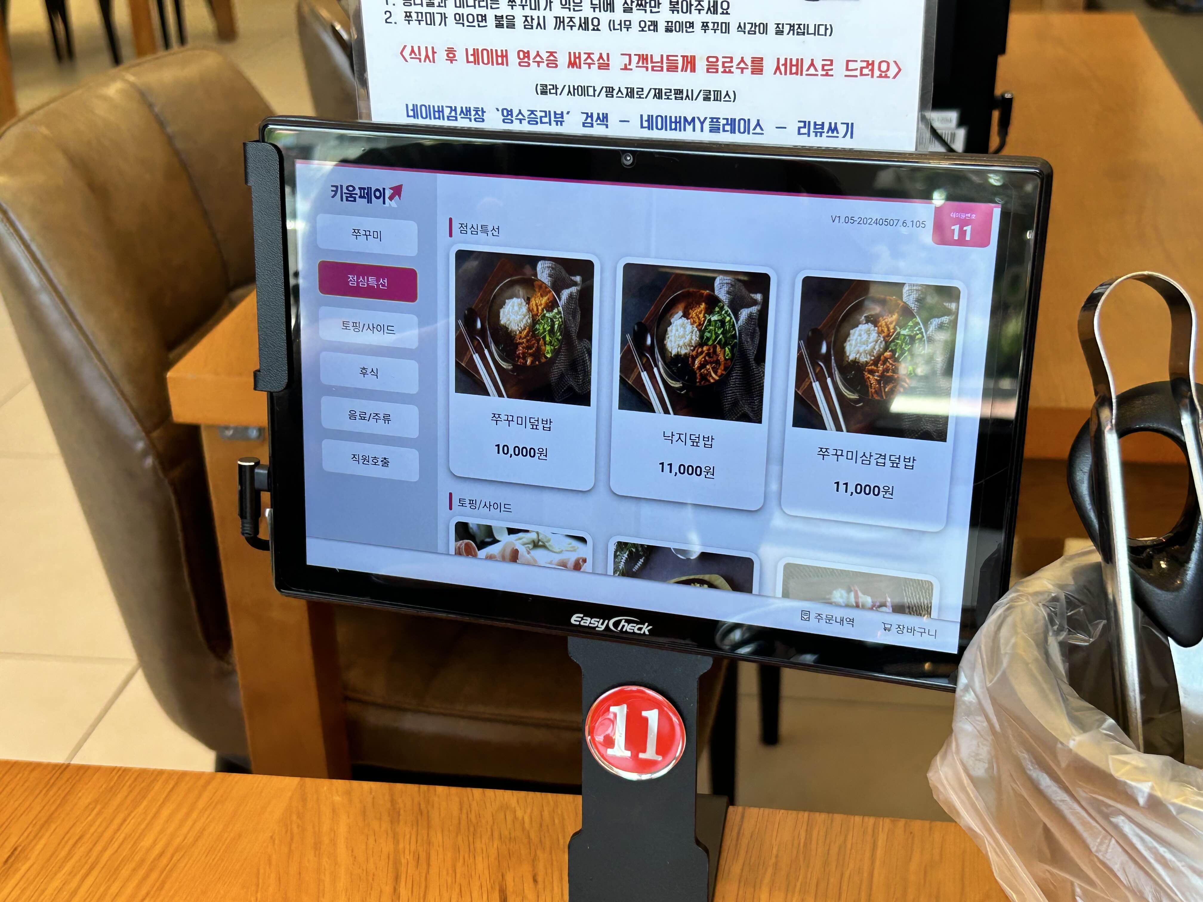 지인들이 다 도착해서 메뉴를 주문하는데 테이블 마다 터치주문 화면이 있어서 주문하기가 굉장히 편했습니다. 여기저기 터치를 해보고 추가할 메뉴 찾고 주문하는데 어렵지 않더라구요.