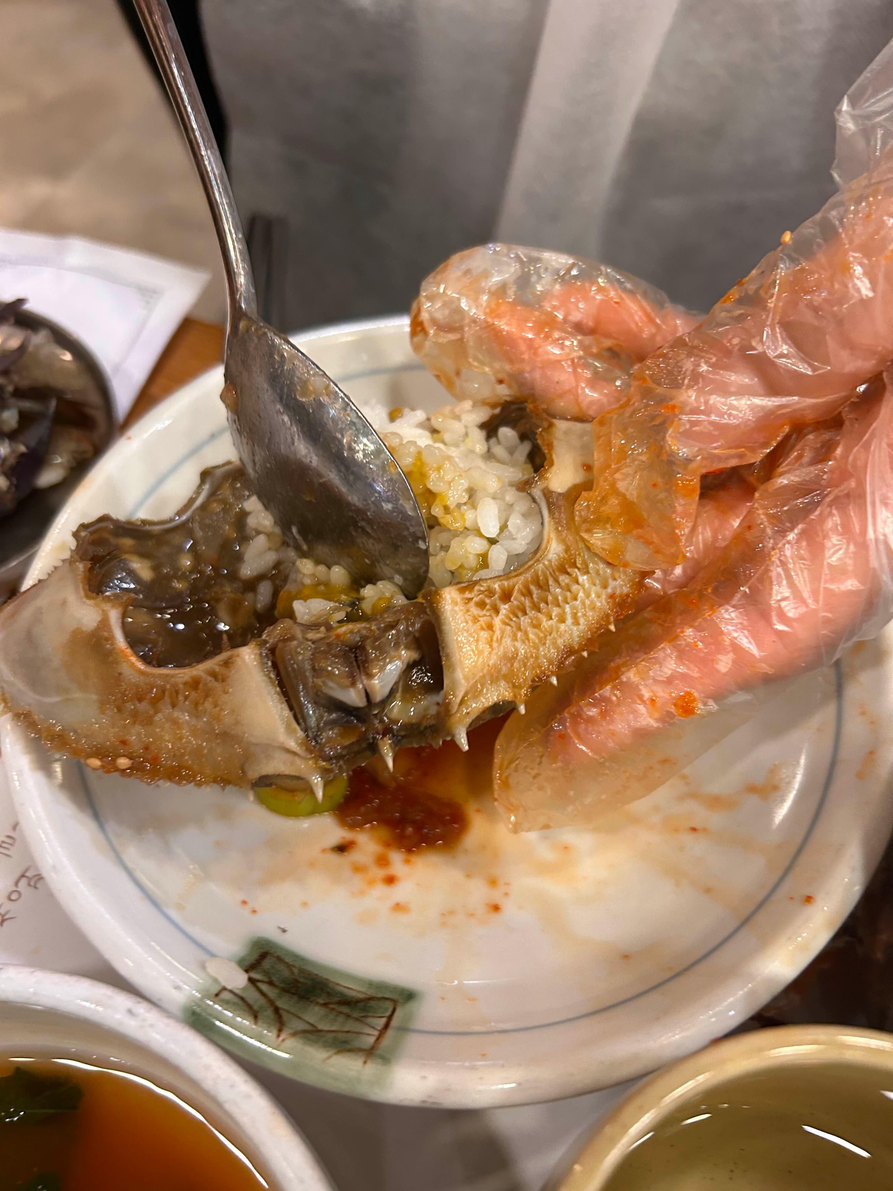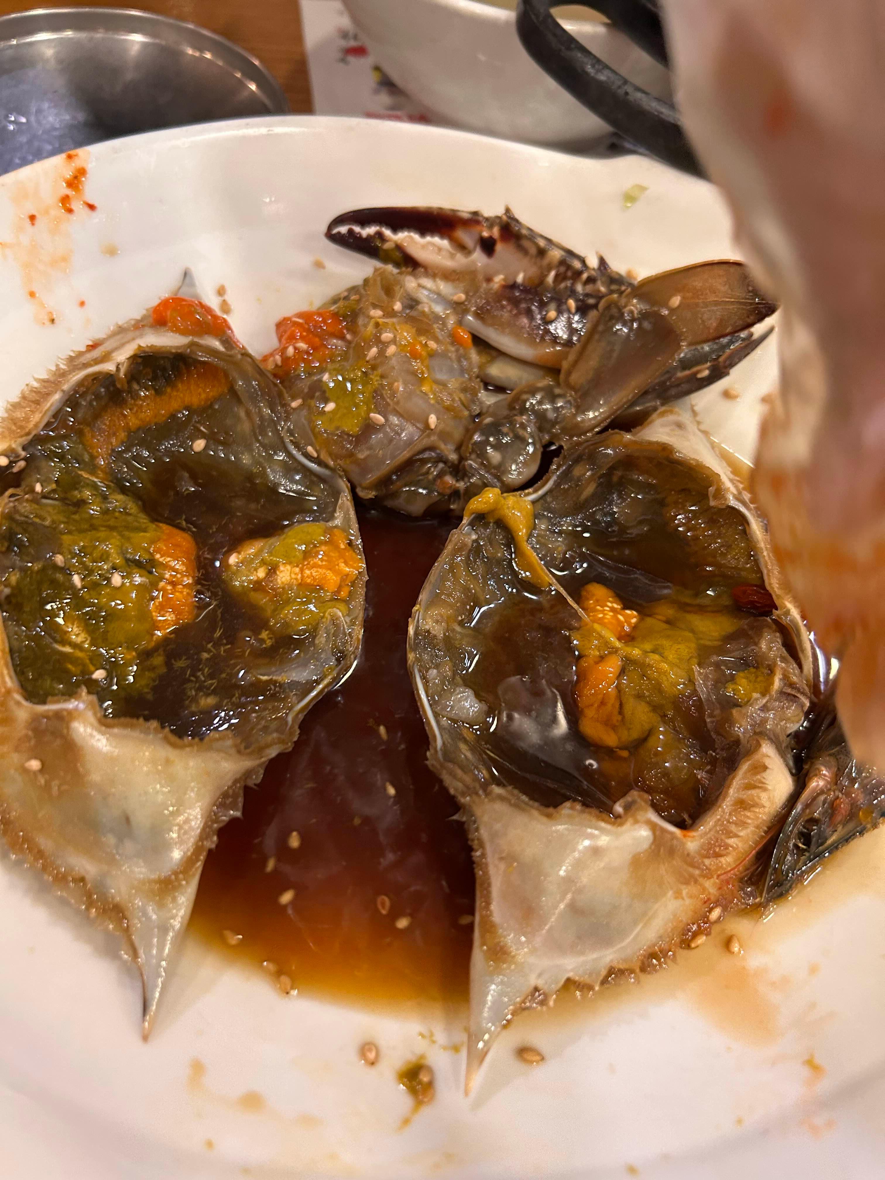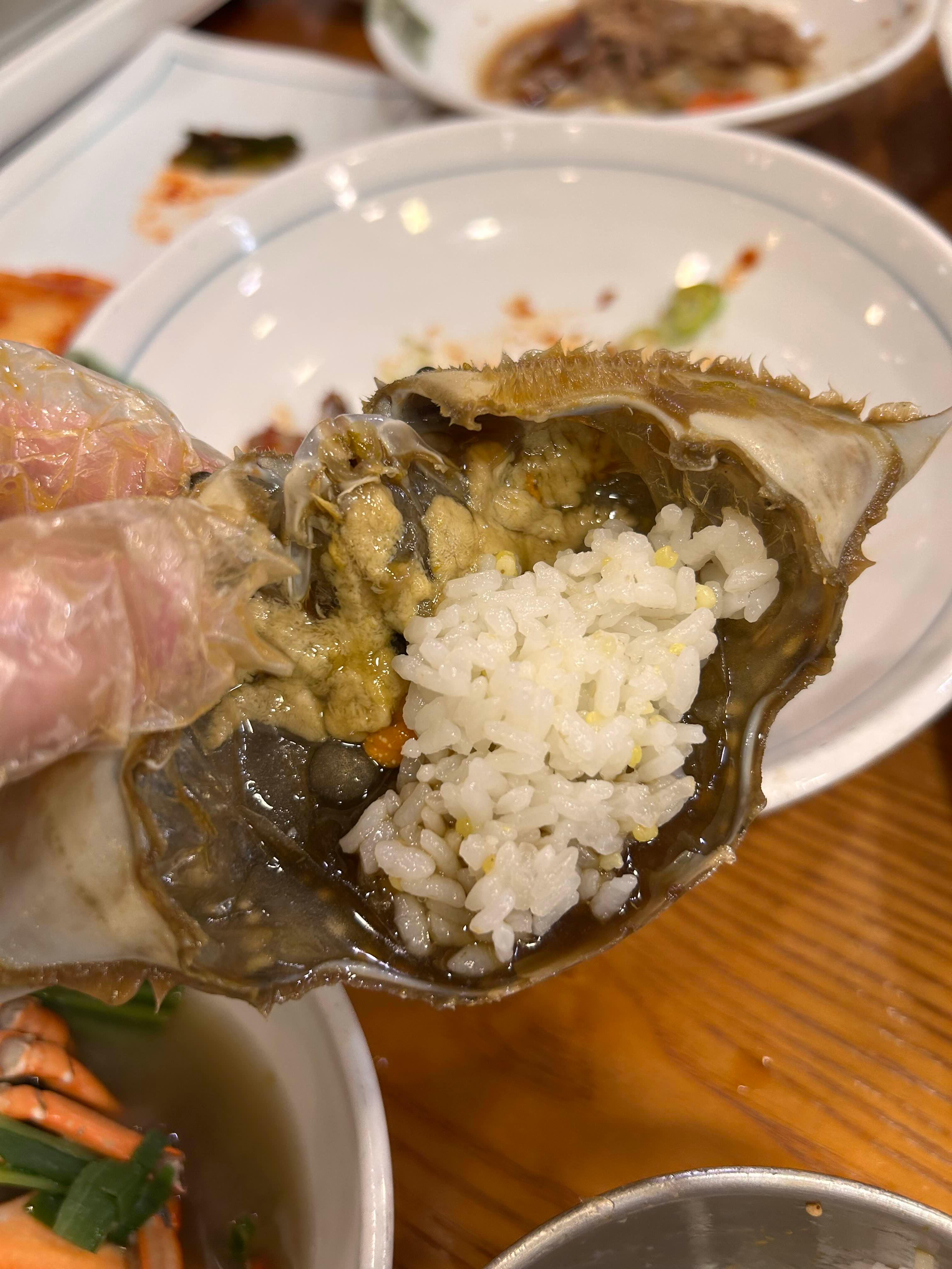 저 남은 게장 국물까지 알뜰하게 먹었치웠어요.