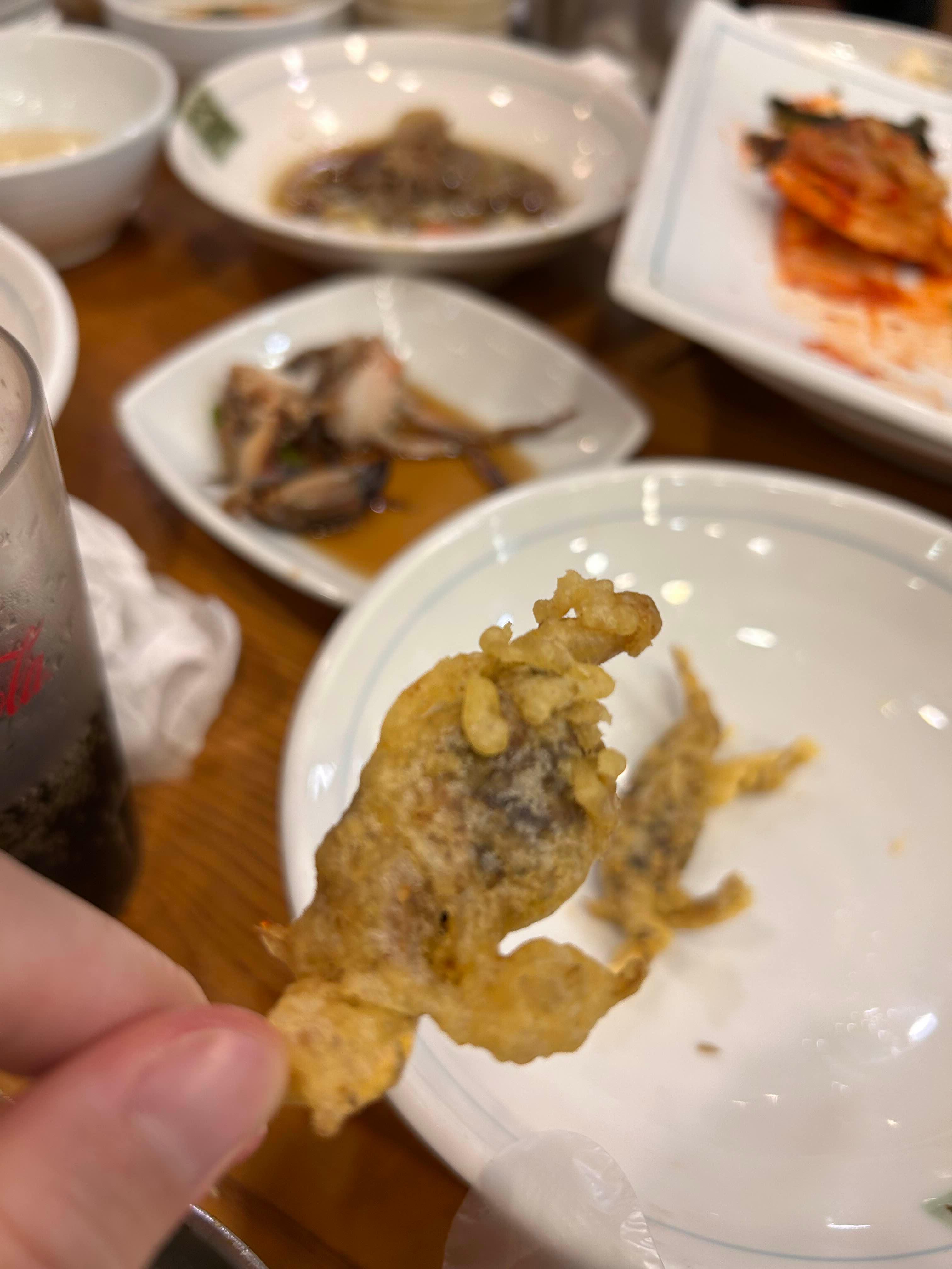 먼가 아쉬워 남은 반찬들을 둘러보니 게 튀김이 있길래 먹어보니 너무 맛있어서 대 반전 이었어요.
