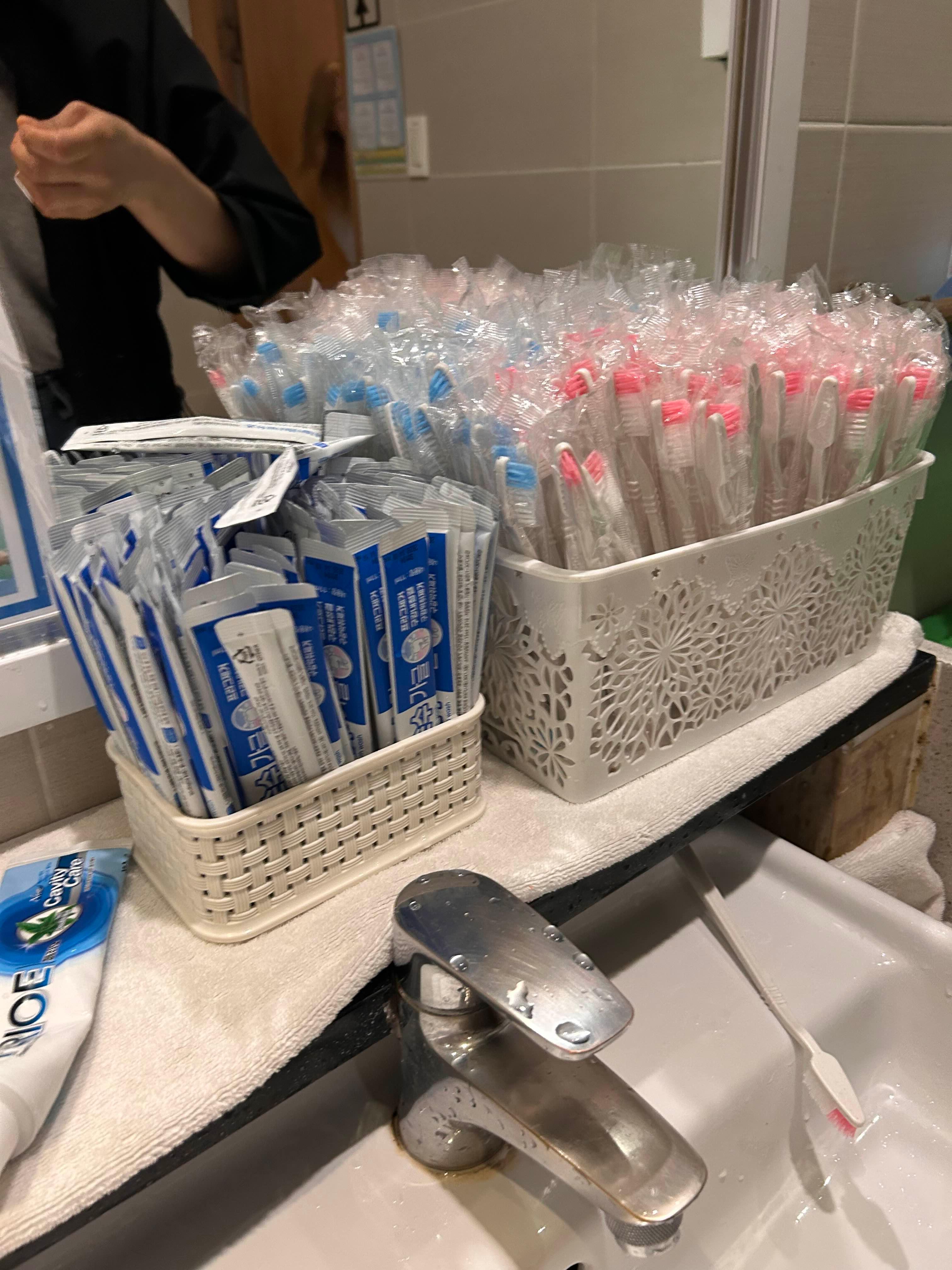 비닐장갑이 터졌는지 손에서 간장게장 냄새가 나서 손도 씻고 일회용 칫솔도 구비되어있어 야무지게 이도 닦고 나왔습니다.