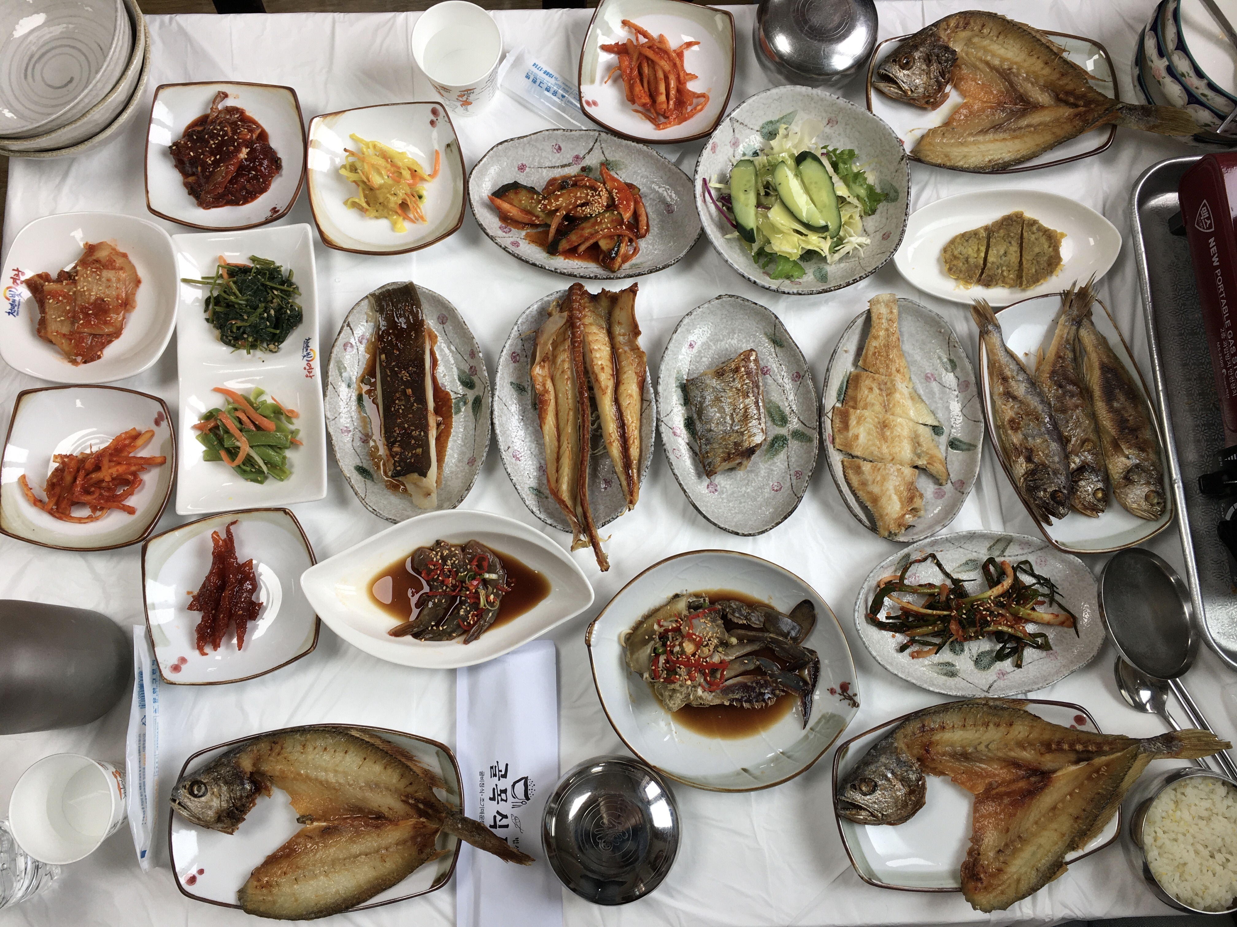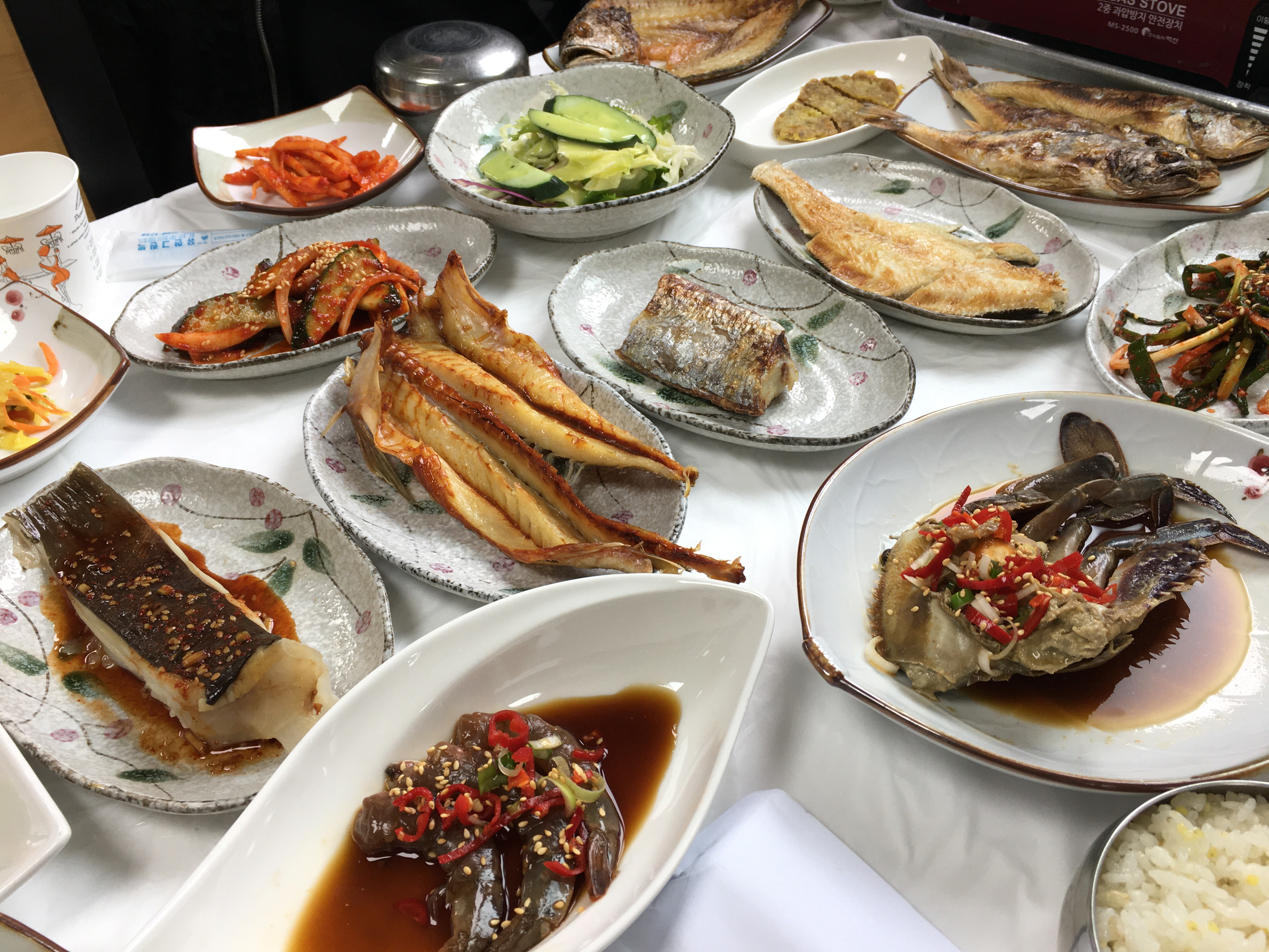 보이시나요. 정말 상다리가 부러진다는게 이런상황에 쓰는말인것 같습니다. 생선들이 하나같이 다 실하고 신선했어요. 그리고 밑반찬들이 정갈하고 맛깔나서 참 정신없이 이것저것 먹느라 바빴습니다.