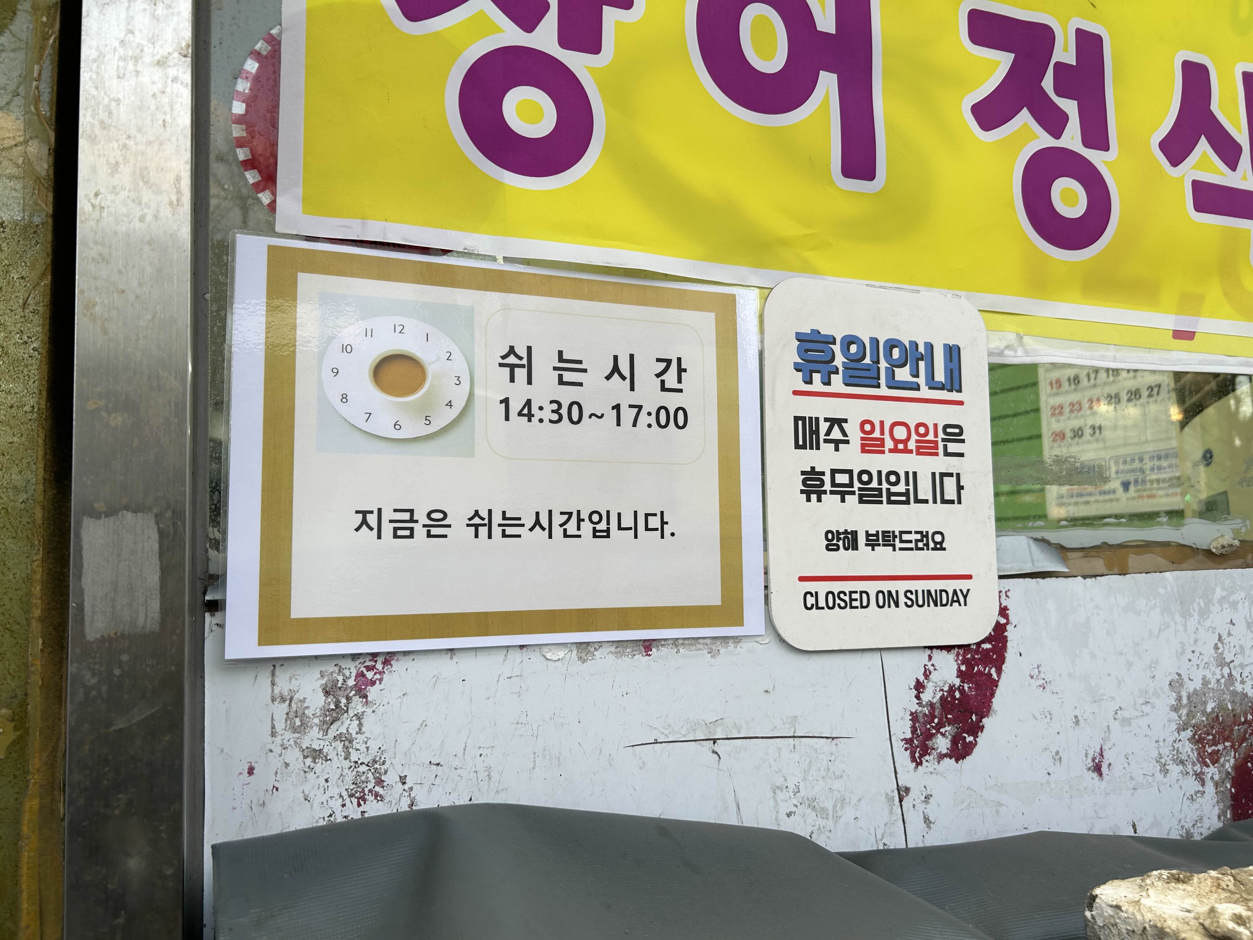 브레이크 타임도 별도로 있는 곳이고 휴일도 매주 일요일 이라고하니 참고바랍니다.