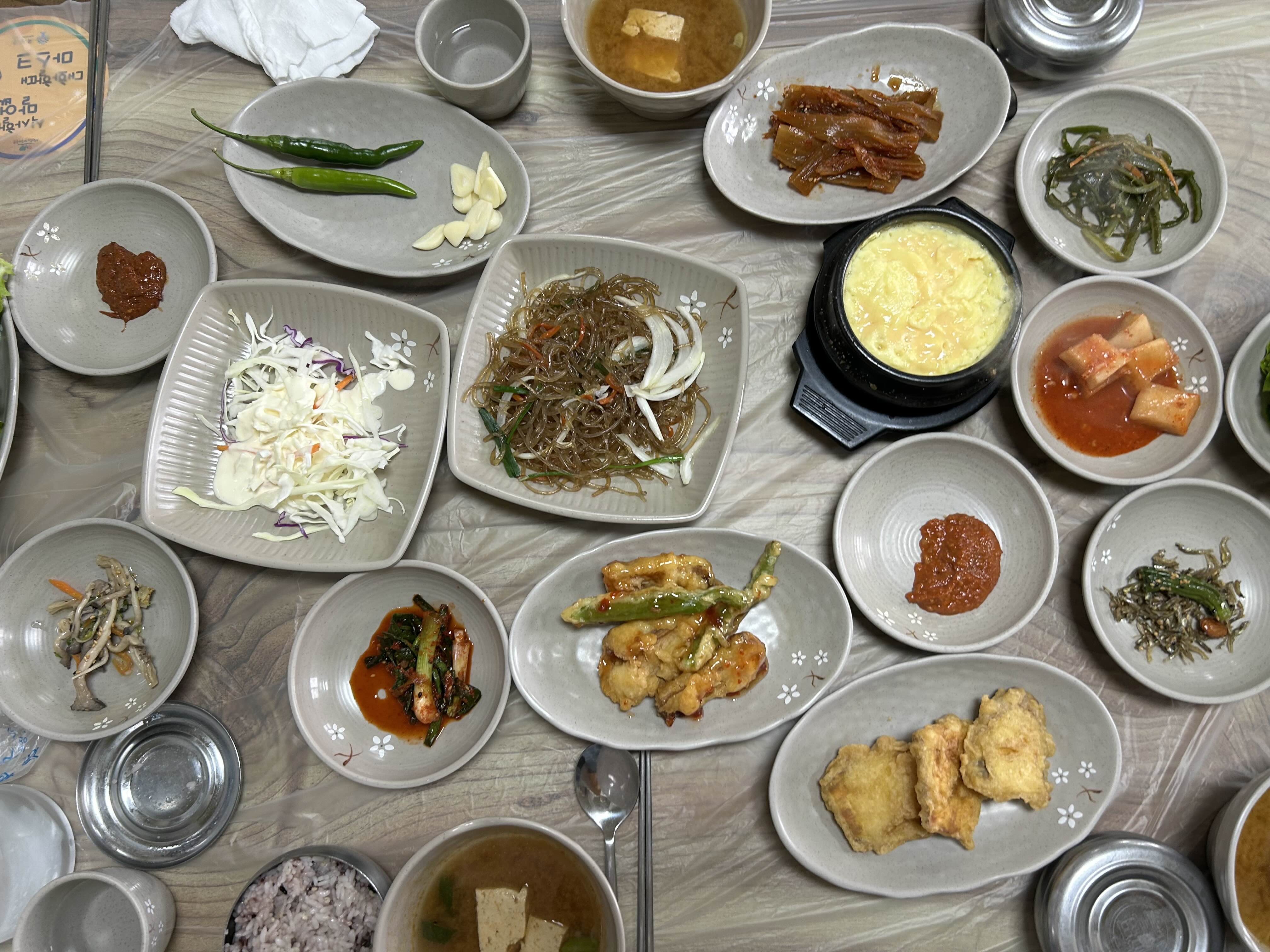푸짐한 계란찜과 튀김 그리고 맛깔스런 된장국, 묵은지 볶음까지 생각했던 것보다 맛이 좋아서 꽤 만족스러웠습니다. 이렇게 많이 주시고 또 맛도 좋은데 가격이 만원도 안되다니 많이 오시는 이유를 알겠네요.