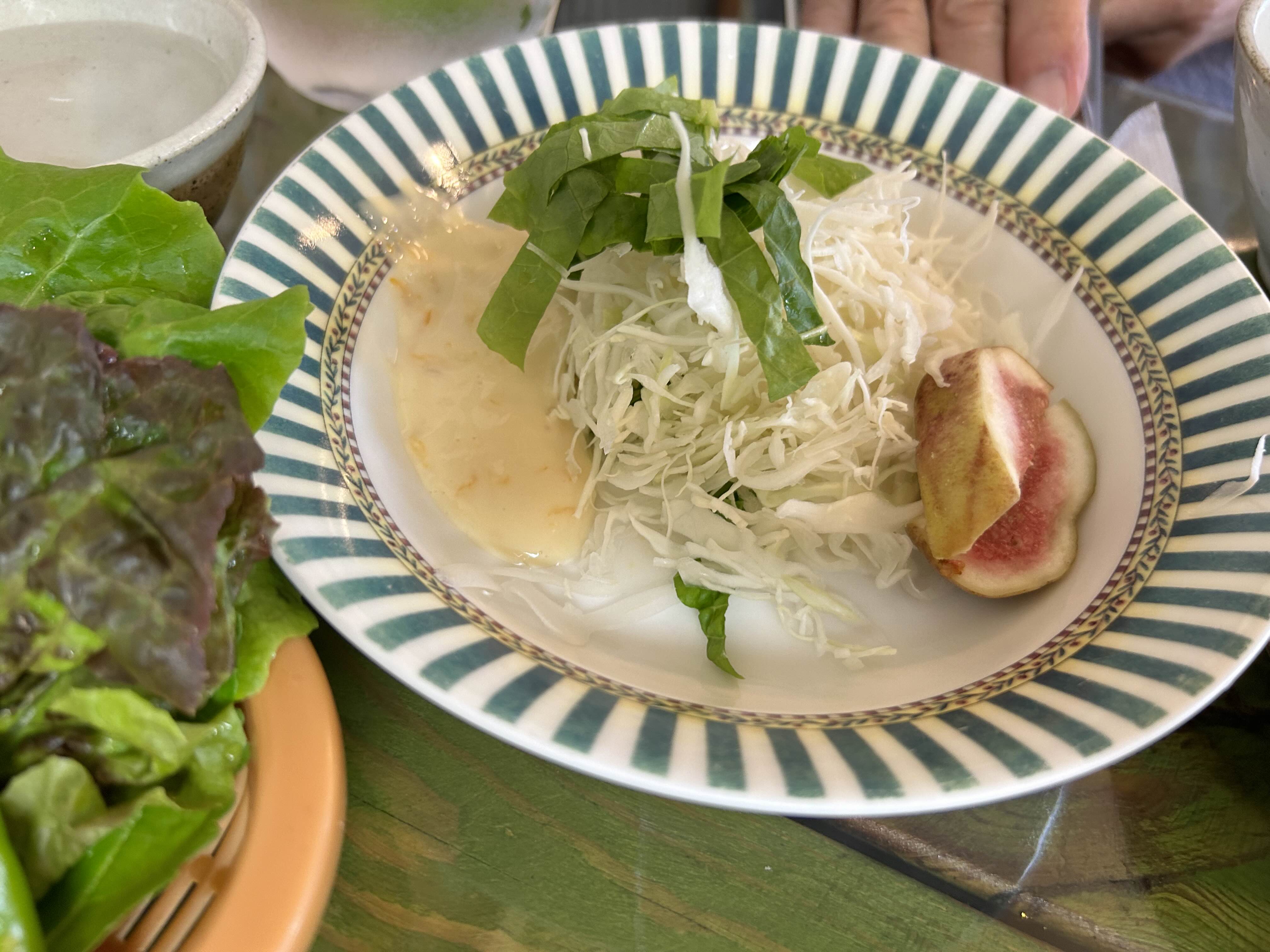 주문을 하고나면 반찬들부터 셋팅을 해주시는데 제일먼저 입가심으로 샐러드를 먹었습니다. 과하지않고 적절히 입맛돋우는데 좋더라구요.