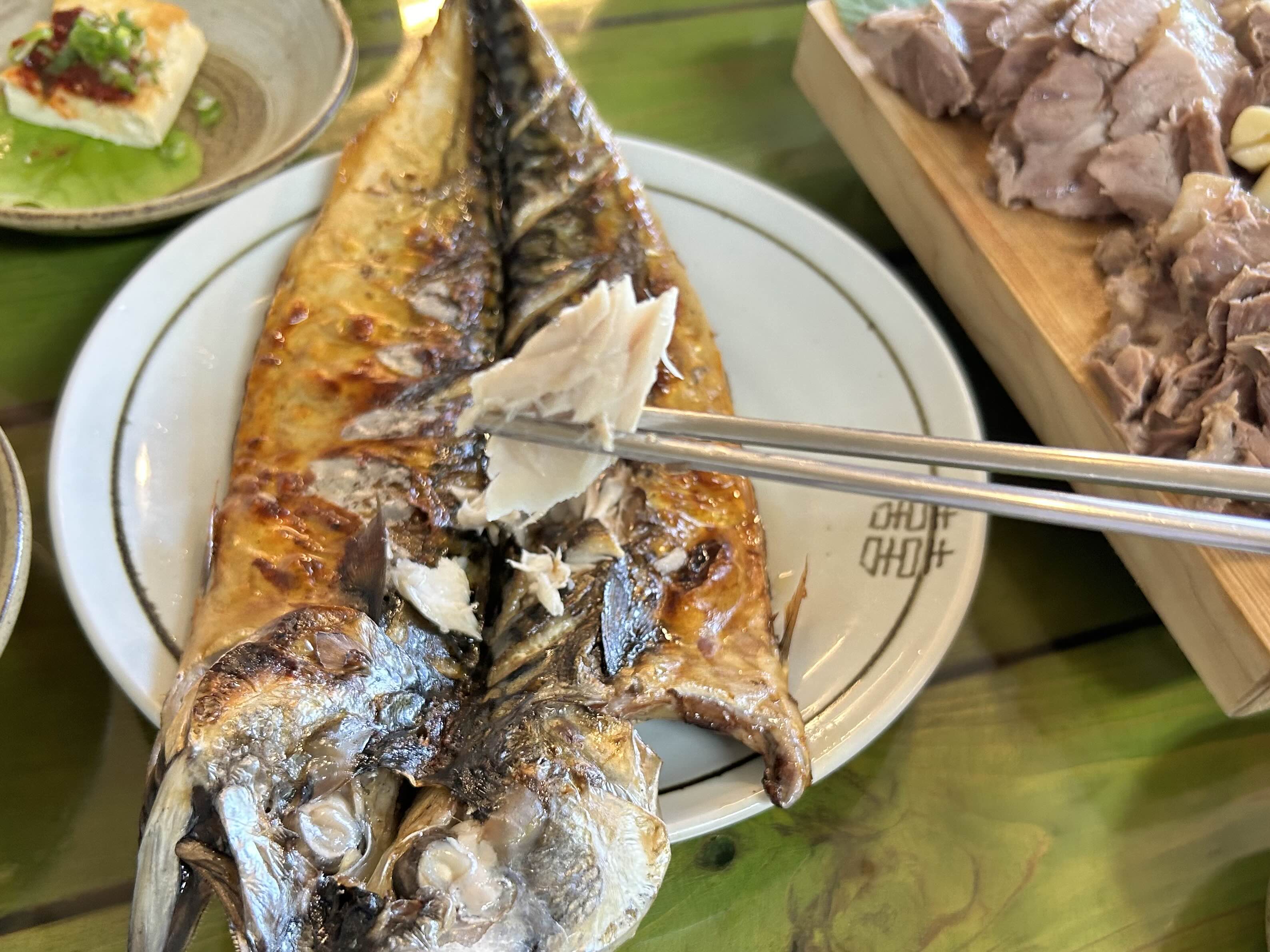 대망의 고등어구이 역시 사먹는게 진리라는 생각이듭니다. 골고루 잘 익어 먹음직스럽고 구워진향이 정말 예술이에요. 크기도 제법커서 4명이서 아주 알차게 발라 먹었답니다.