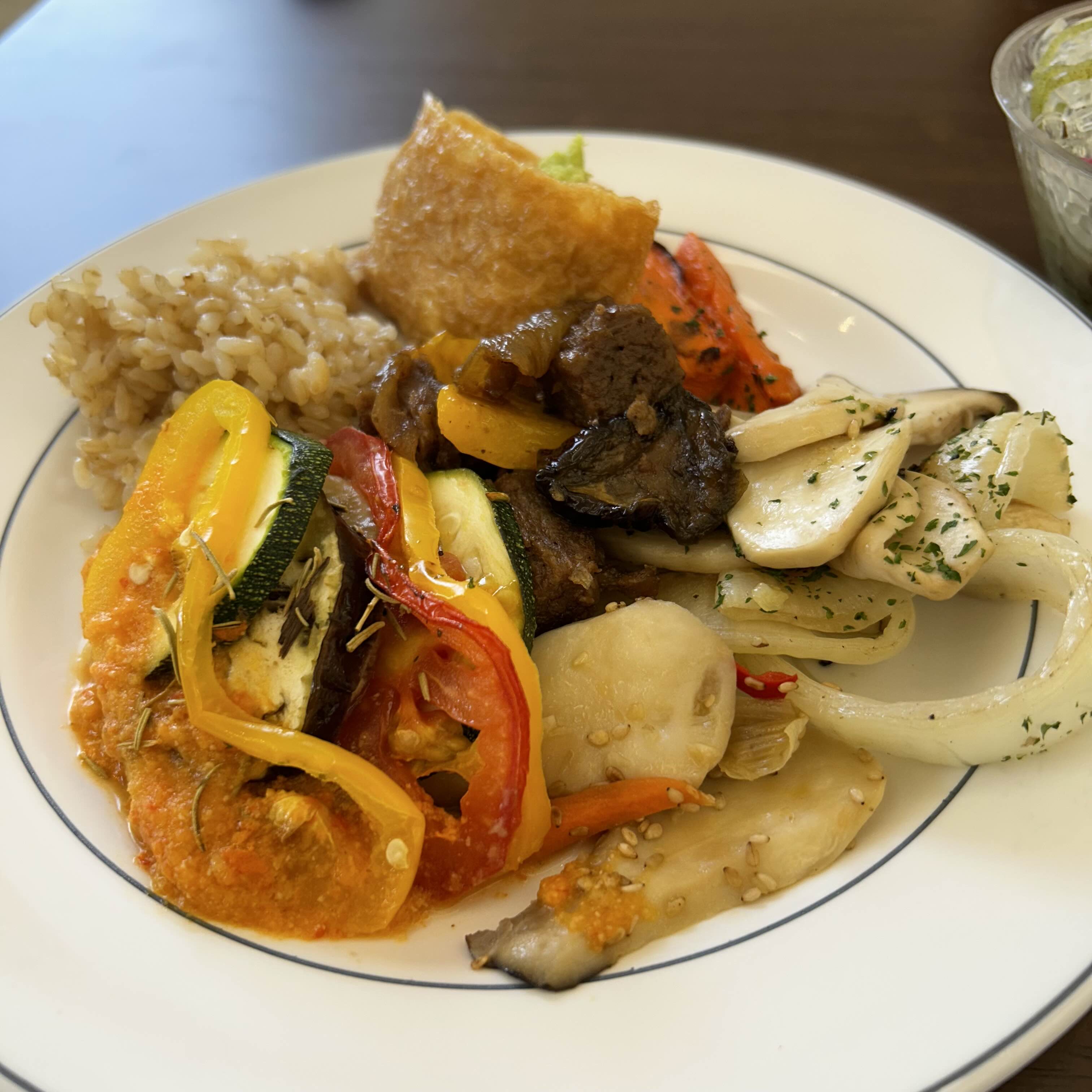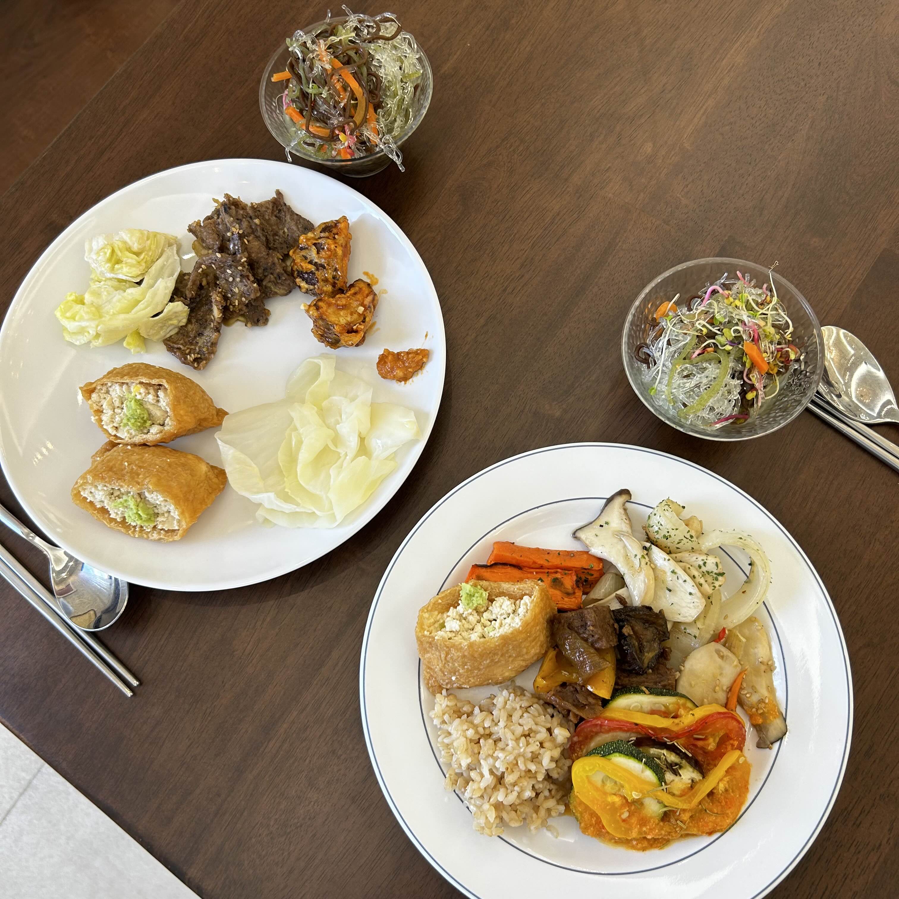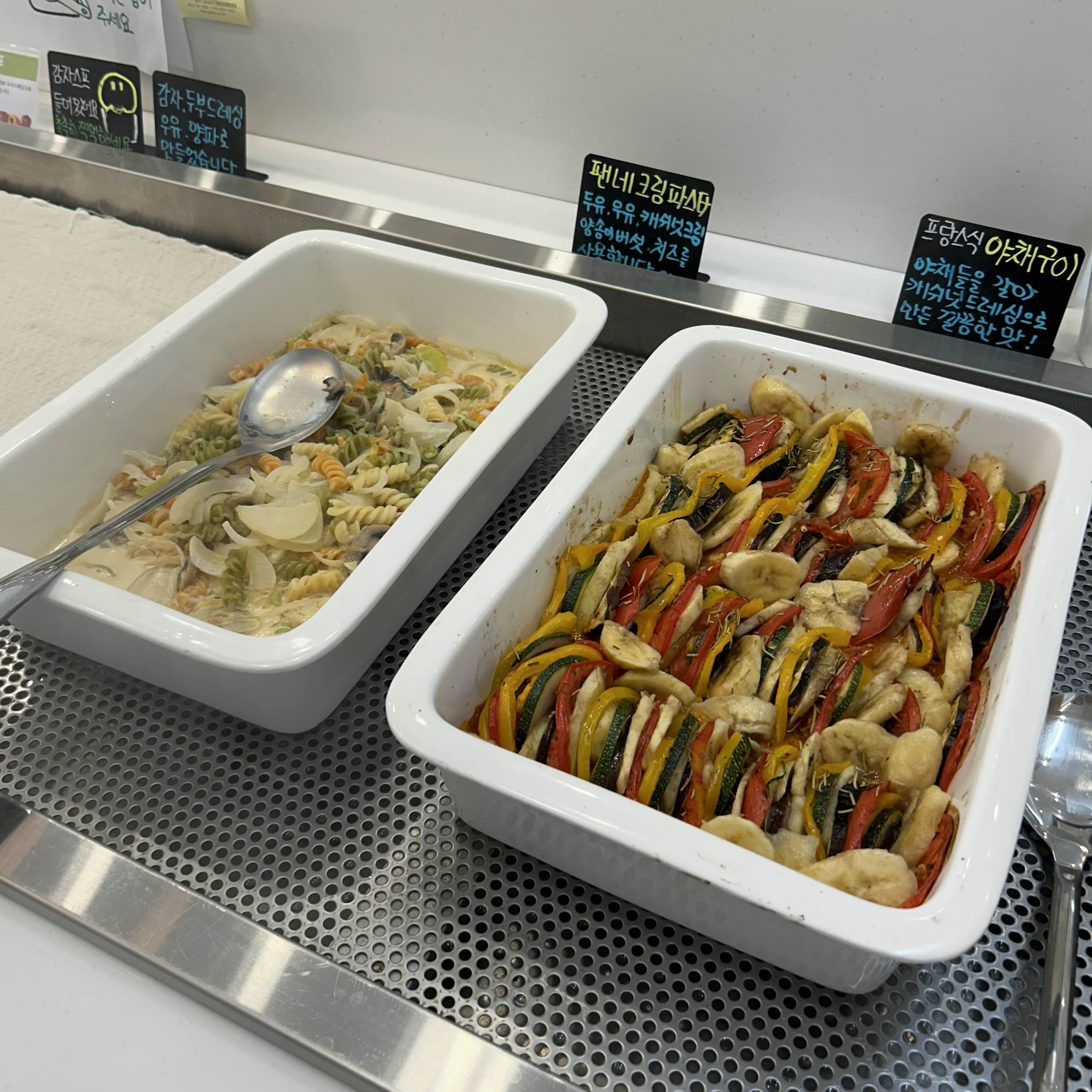 야채뷔페답게 다양한 야채들 요리가 비치되어있는데 새로운것들도 있어서 눈요기 하면서 하나씩 담아내는 재미도 있더라구요. 프랑스식 야채구이 처음먹어보는데 이질감 없이 맛있었어요.