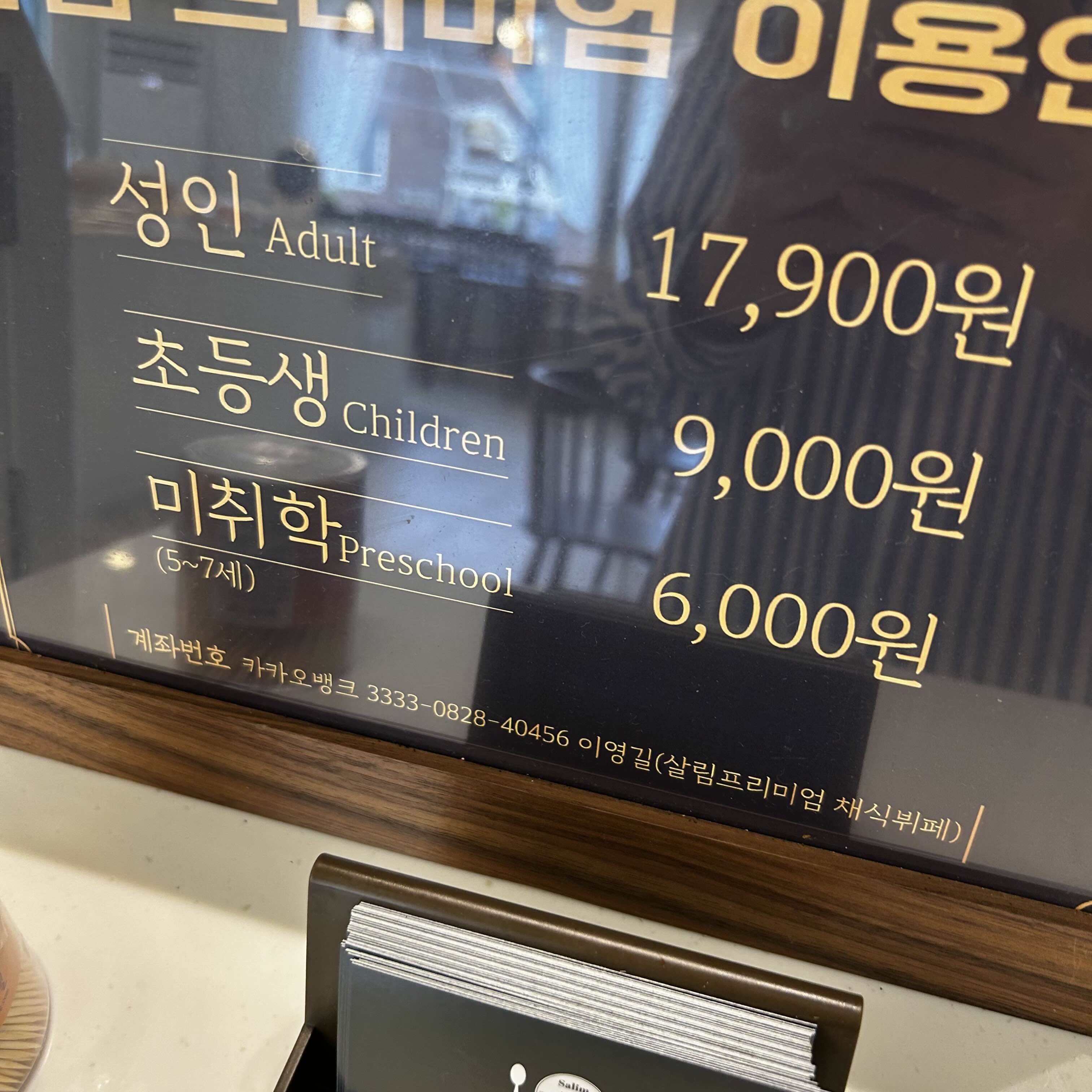가격대는 3종류로 세분화 되어있고 입장하자마자 바로 인원수 대로 선결제 해야합니다.