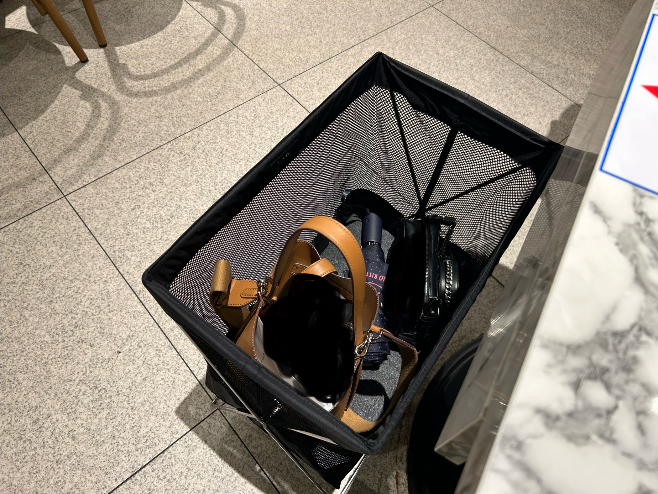 그리고 각 테이블 아래마다 짐 보관하는 케이스가 있습니다. 좌석을 타이트하게 앉아야 하는데 이런게 있으니 꽤 실용적이고 좋더라구요. 덕분에 편하게 짐을 보관하면서 식사를 할 수 있었습니다.