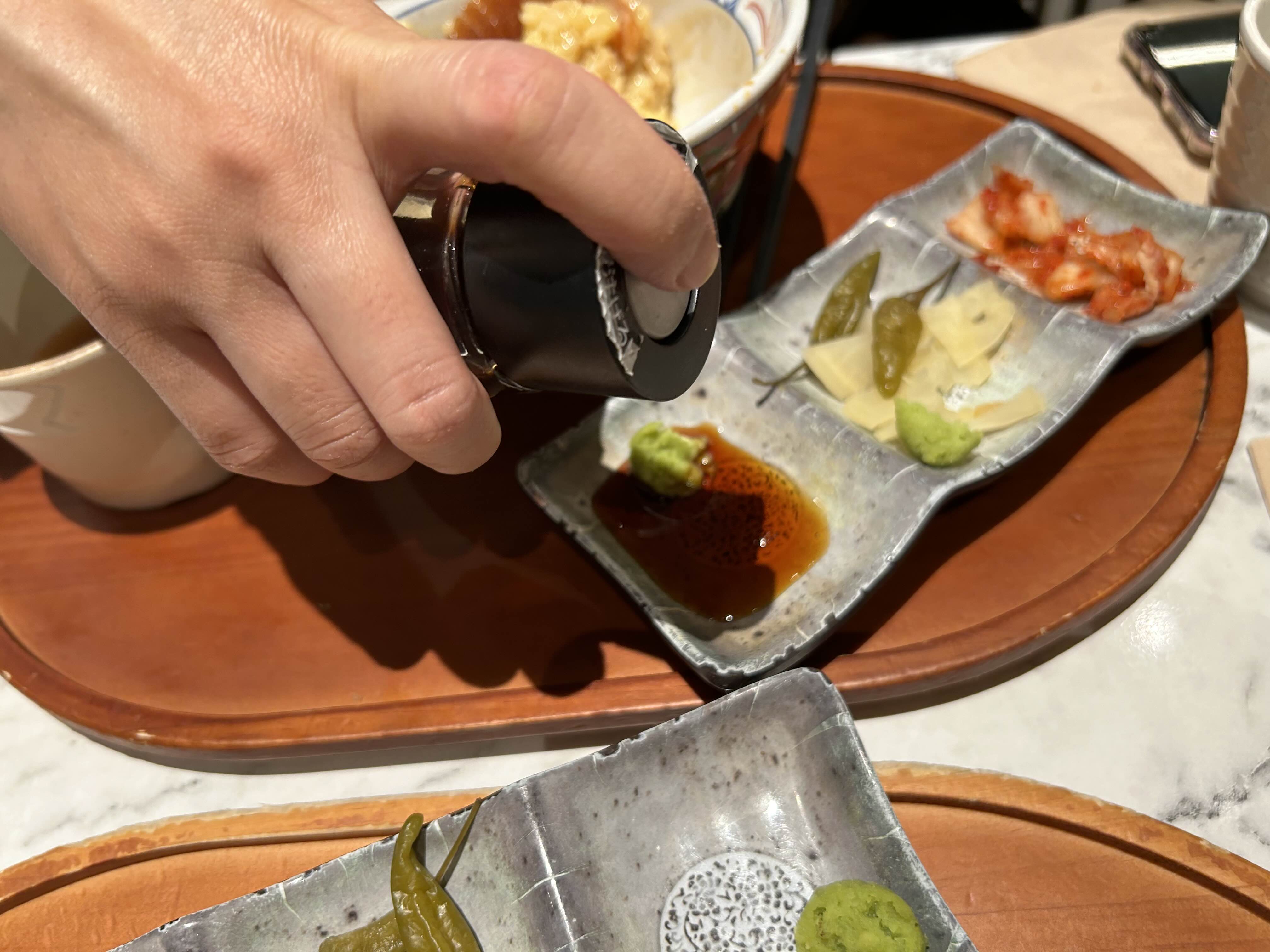 계란 가운데를 찌르면 노른자가 흘러나옵니다. 흰밥에 이미 간장소스가 있어서 같이 섞어주기만 하면되는데 느끼하지않고 맛있었습니다. 간장 소스와 노른자 조합이 정말 신의 한수인거같아요.