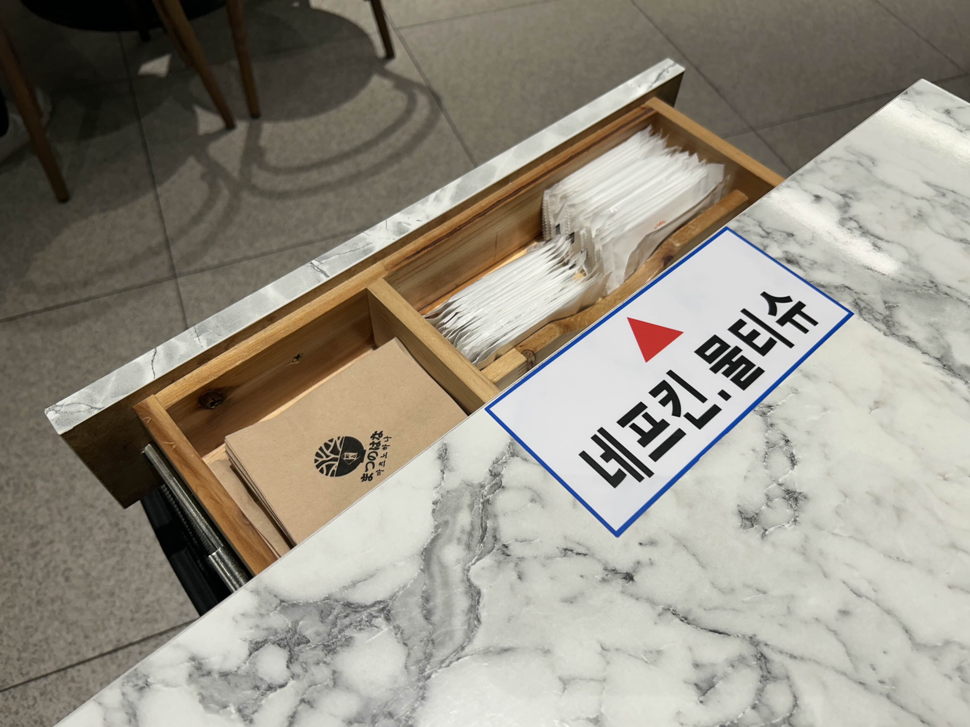 밥 먹기전 테이블 셋팅을 하려는데 보기좋게 안내문구가 딱 있더라구요. 외국인도 많이보이던데 한눈에 알아보라고 해놓은 배려인것 같습니다.