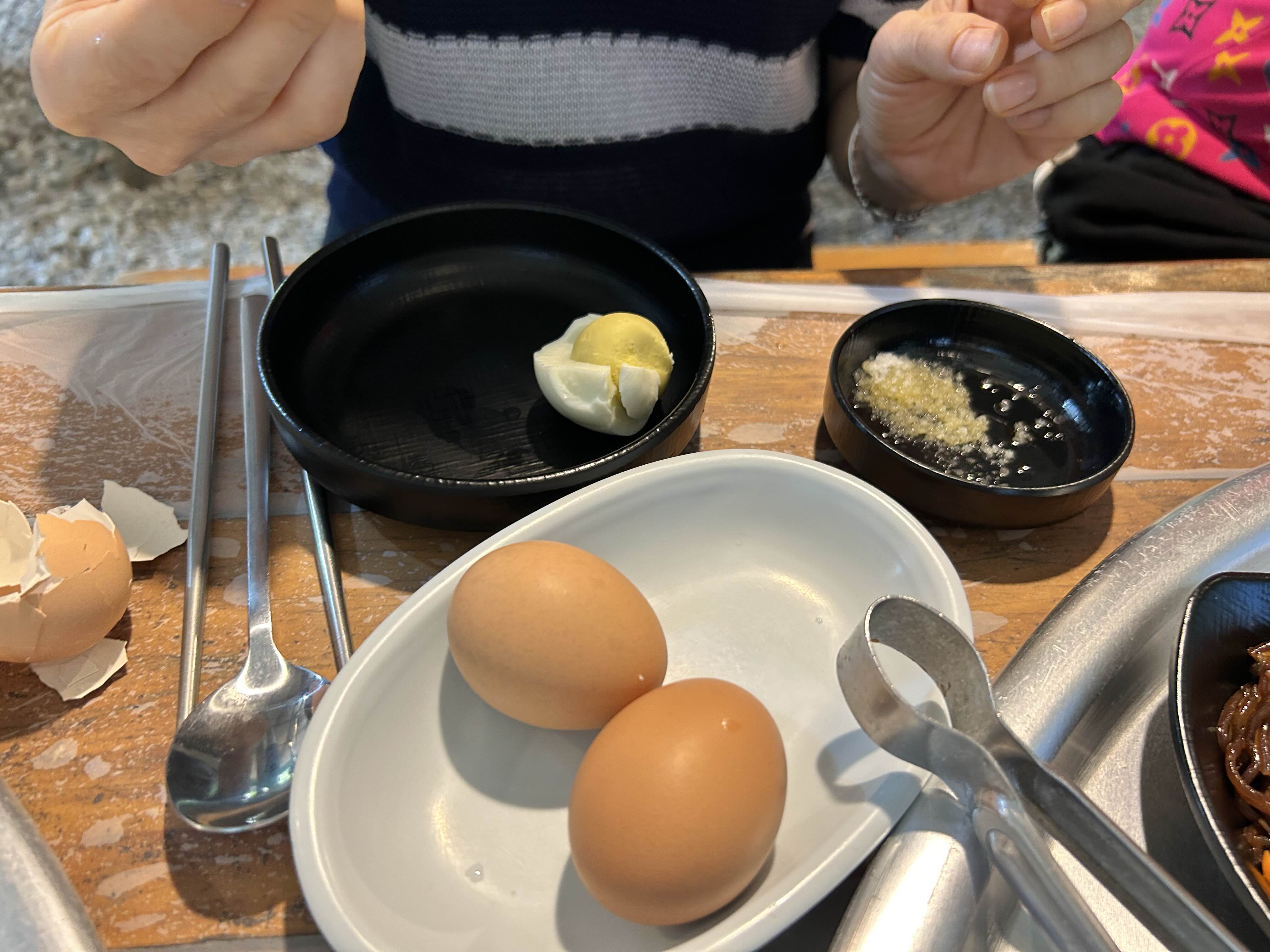 일단 저희는 백숙과 닭도리탕을 주문하고 먼저 내어주신 반찬들과 삶은계란을 먹기 시작했답니다. 빈속이라 그런지 뜨끈한 계란이 참 맛있었습니다.