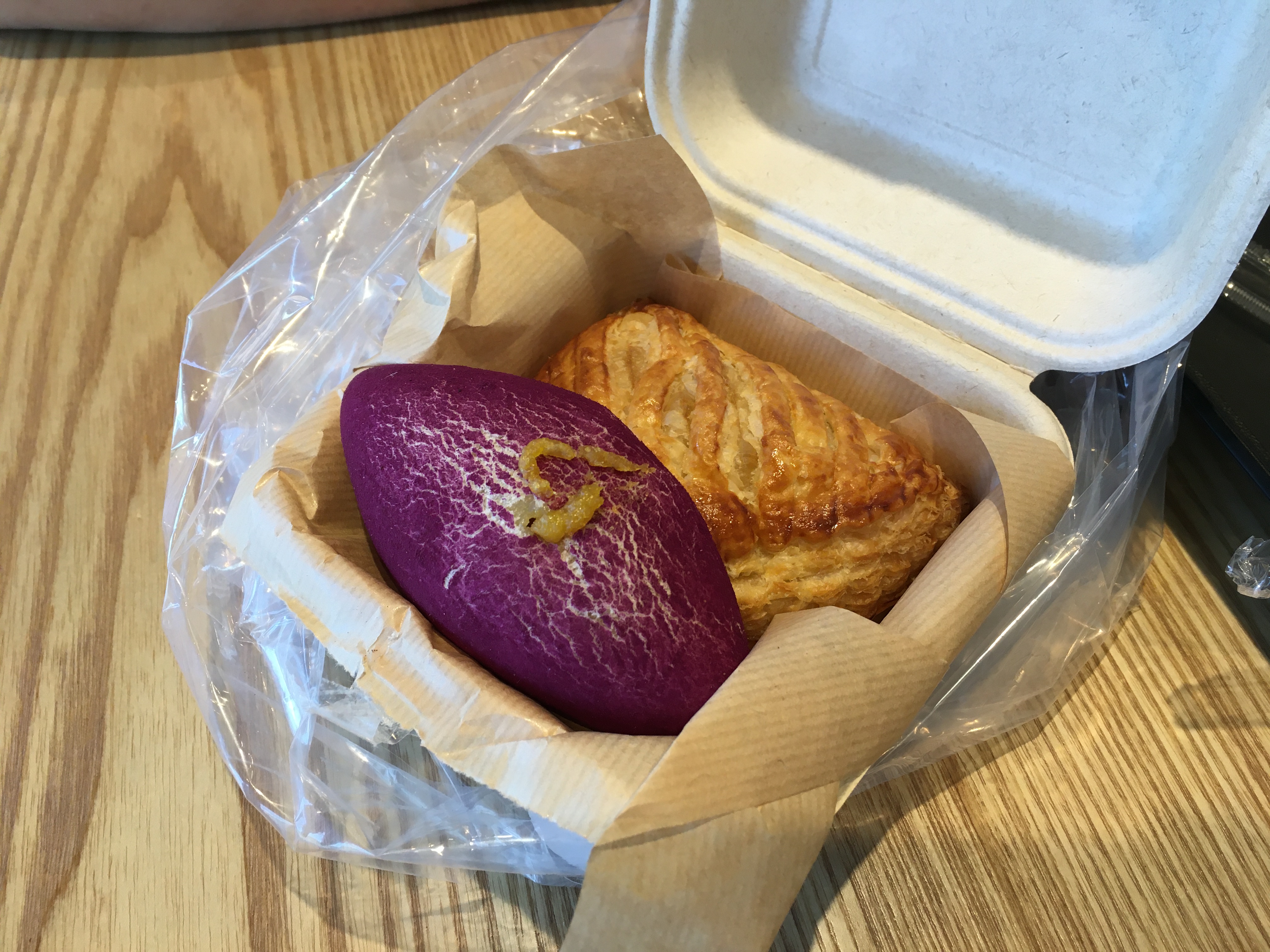 커피와 그리고 빵을 주문했는데 요기에서 파는 고구마 모형의 빵이 참 맛이 좋았습니다. 겉은 크리스피하고 안은 정말 고구마가 들어있더라구요. 자색고구마 느낌으로 만든 빵이였습니다.
