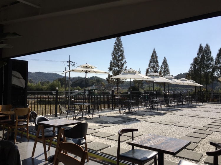 야외테라스 쪽으로 더 가까이 가서 찍어보았습니다. 일찍 도착하니 사람도 없고 너무 좋더라구요. 요즘같이 낮에는 광합성을 하기에 매우 좋은 장소인것같습니다. 코로나로 인해 부족한 야외활동이나 여유를 만끽하기 좋겠더라구요.