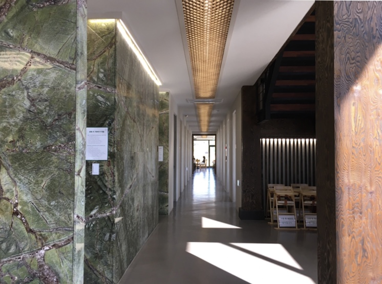유아용 의자도 마련되어있어 온가족이 오기 좋을것 같습니다. 복도 끝에도 공간이있어 쾌적해 보였습니다. 나무와 대리석의 만남이 이질적이지않고 편하고 좋더라구요.