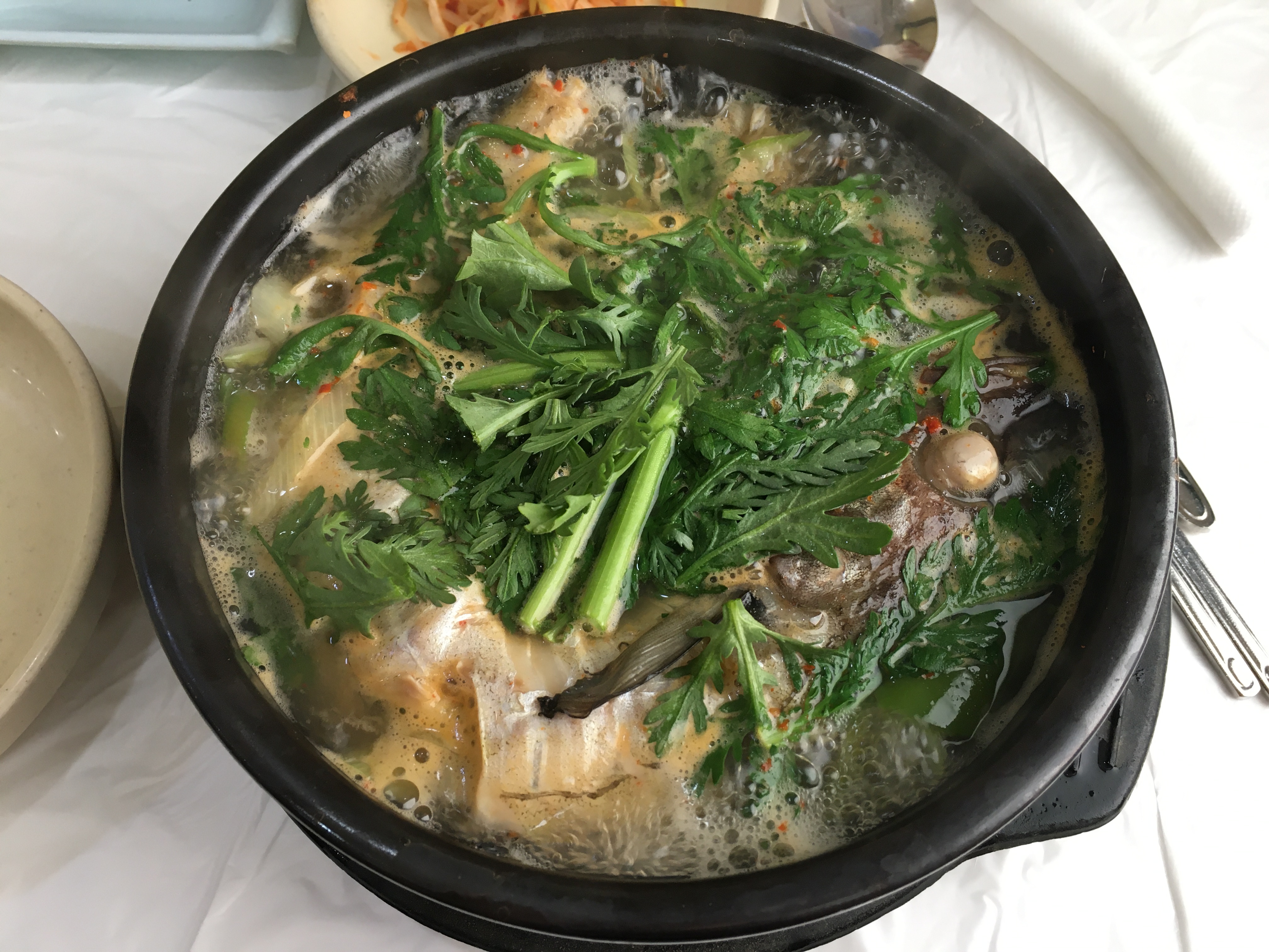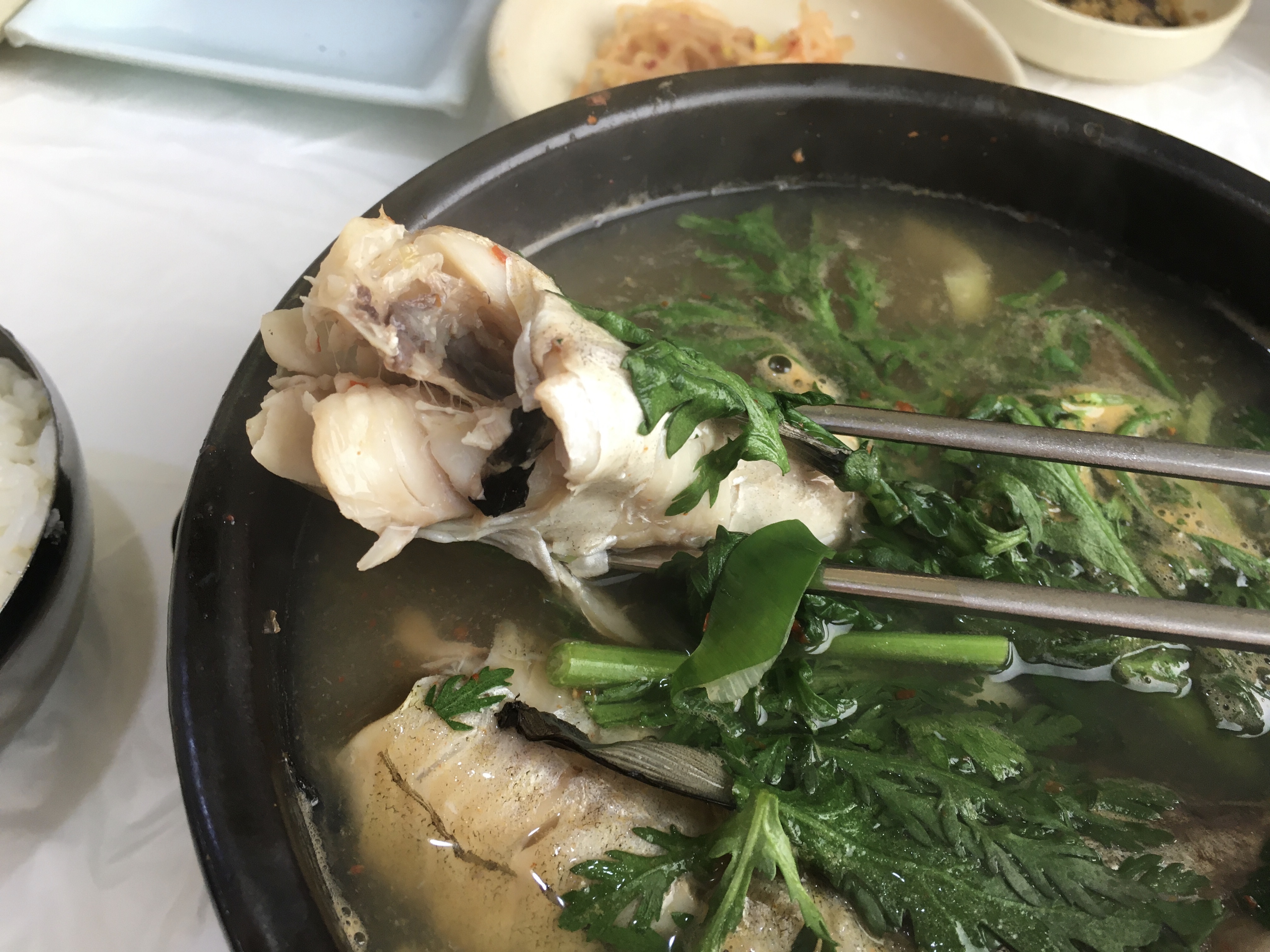 국물 한수저와 살점 한 덩어리 그리고 흰밥에 아주 맛있게 먹었습니다. 쑥갖도 육수에 촉촉히 젖어 샤브샤브를 먹는거 같은 느낌으로 맛이 아주 좋았습니다.