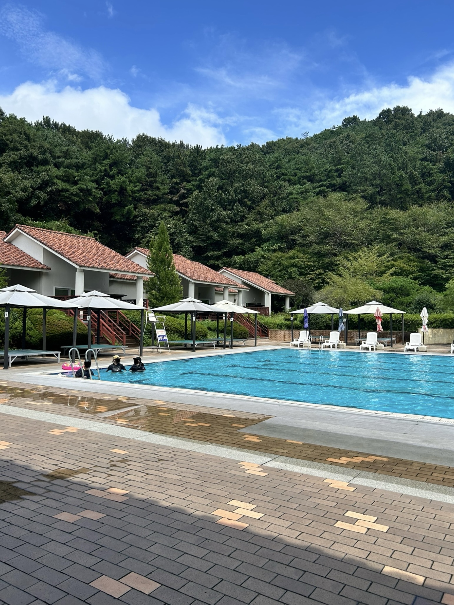 거의 머 저희들 세상처럼 신나서 수영했던것 같아요. 관리하는 수영장임에도 불구하고 락스냄새가 나지않아서 신기하고 좋았습니다. 수영하다보면 코나 목에서 매캐한 느낌이 드는데 그런것이 전혀 없었답니다. 하늘 청명한거 보이시나요. 비가 한바탕 쏟아붓고나니 주변에있는 산과 어우러져 경관이 아주 예술이었어요.