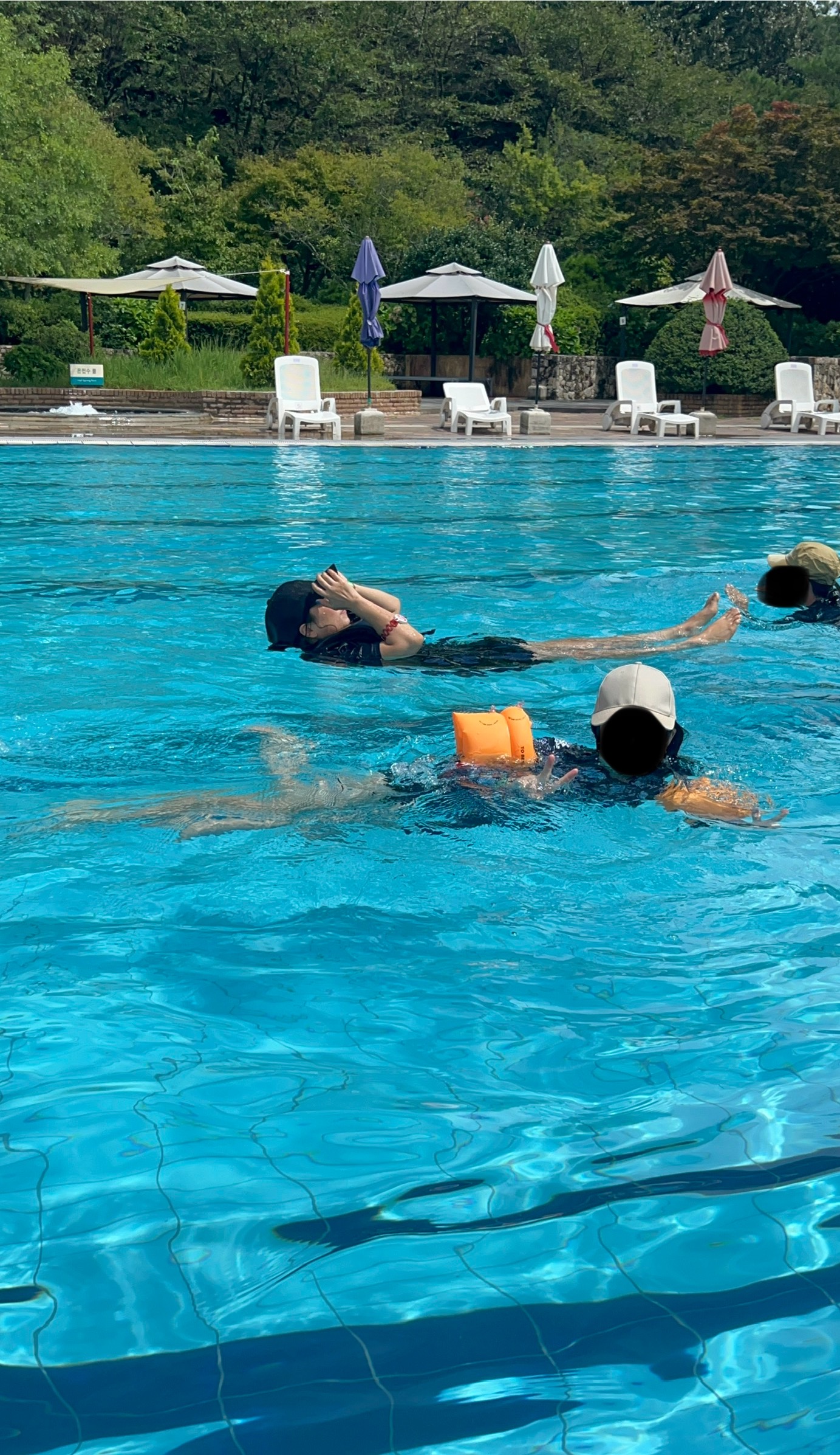 친구들과 한참 재미지게 수영도하고 사진도 많이 찍고 수다도 떨면서 한시간이상 물속에서 놀았던것 같아요. 어릴때말고 이렇게 다 큰 성인이되어 야외수영장을 이용하니 색다른 기분이 들더라구요. 친구들도 아이들 유치원가고 잠깐 오기 너무좋다며 저보다 더 신나서 놀았습니다.
