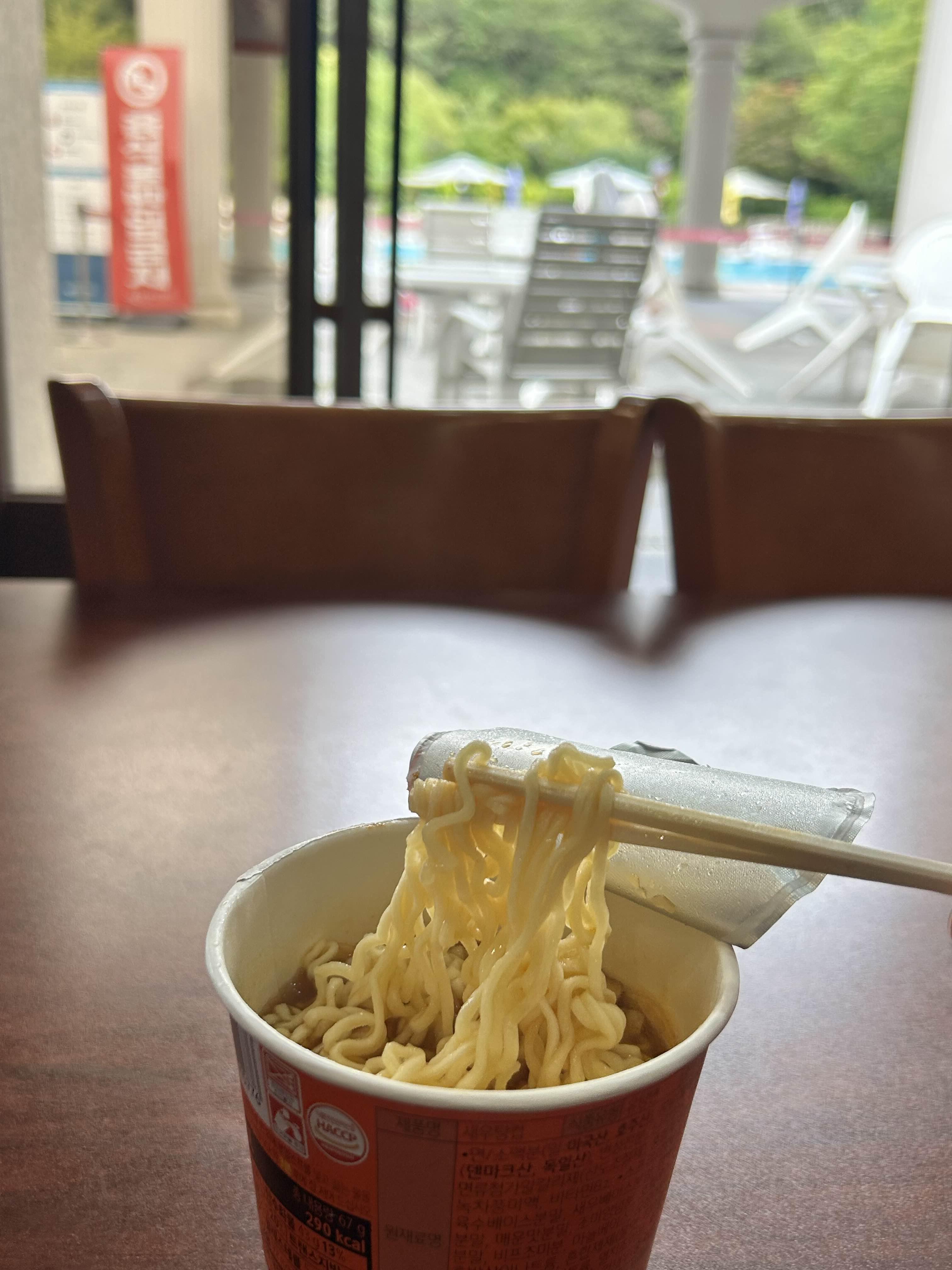 물놀이를 거의 마쳐갈때쯤 좀 출출해서 매점에서 라면을 사먹었네요. 엄청 배가 고픈건 아니였고 입가심으로 먼가를 먹고싶었는데 작은 컵라면으로 잘 떼웠습니다.