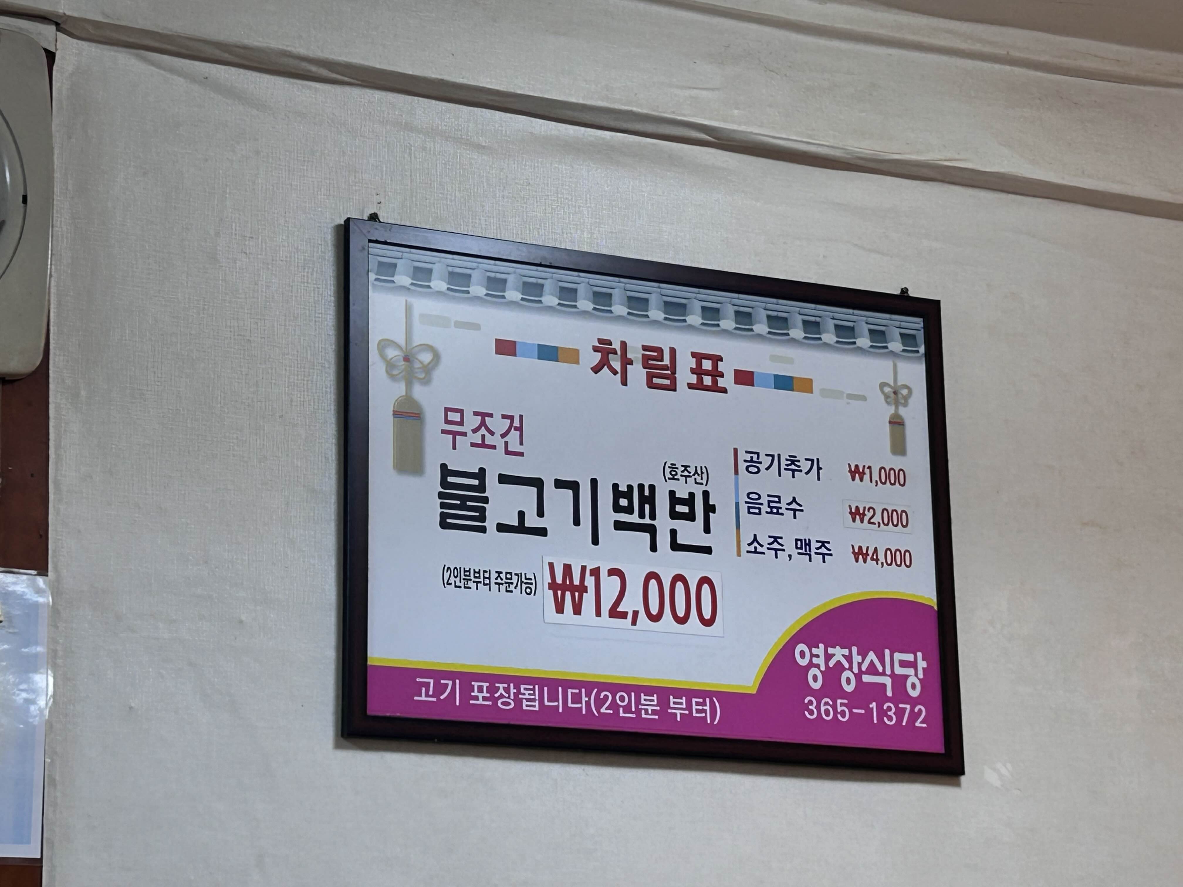 영창식당 메뉴는 딱 하나 불고기백반 단일메뉴 입니다. 인원수대로 불고기 양과 반찬용량이 정해져서 나옵니다. 몇년만에 온거라 또 기대되고 날도 추워지고해서 불고기가 땡기더라구요.