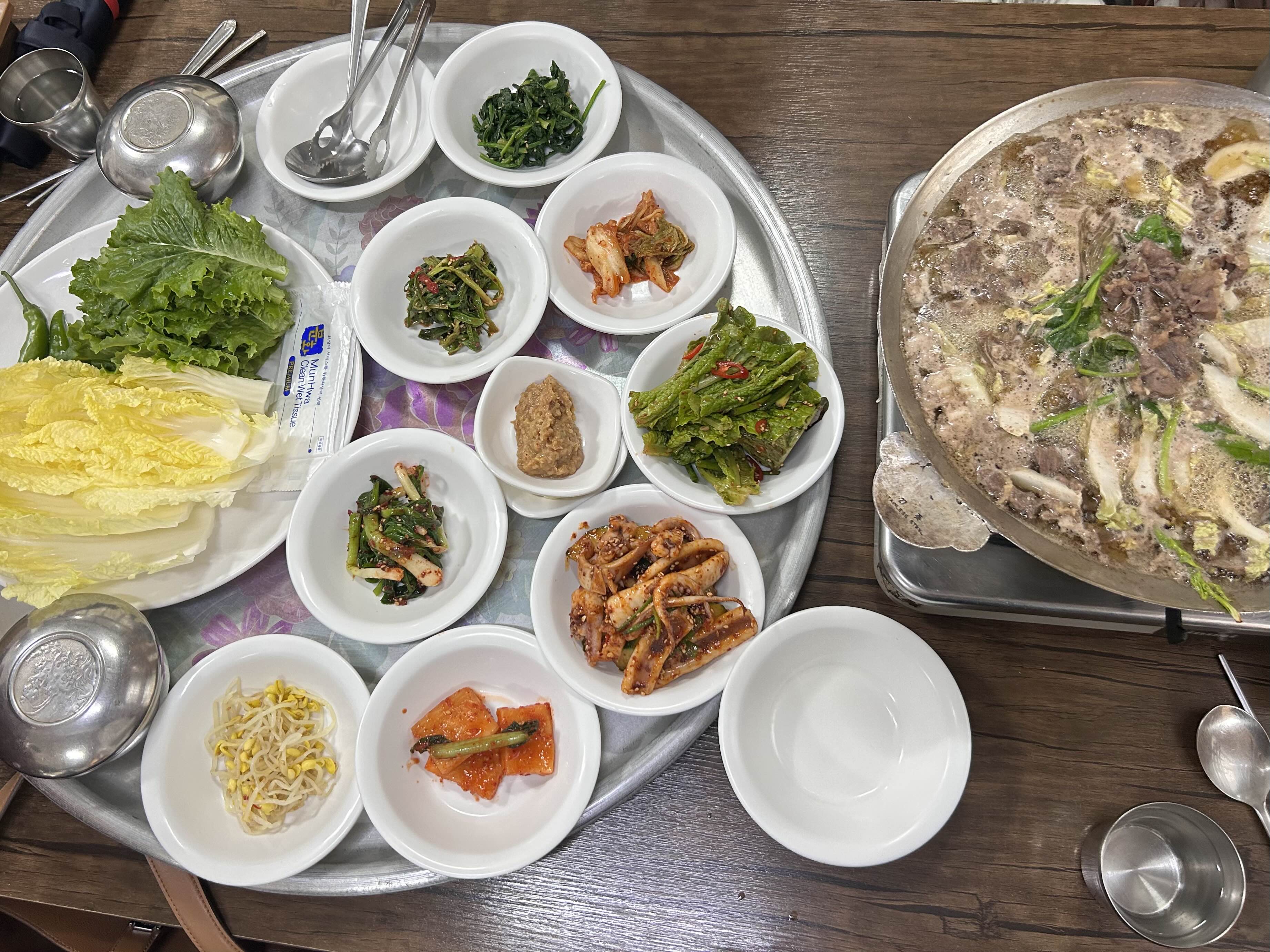 입장 순서대로 테이블마다 셋팅이 되는데 드디어 저희차례가 되어서 반찬들과 불고기가 차려집니다. 반찬들의 다채로운 색감이 식욕을 확 돋구게 해줍니다.