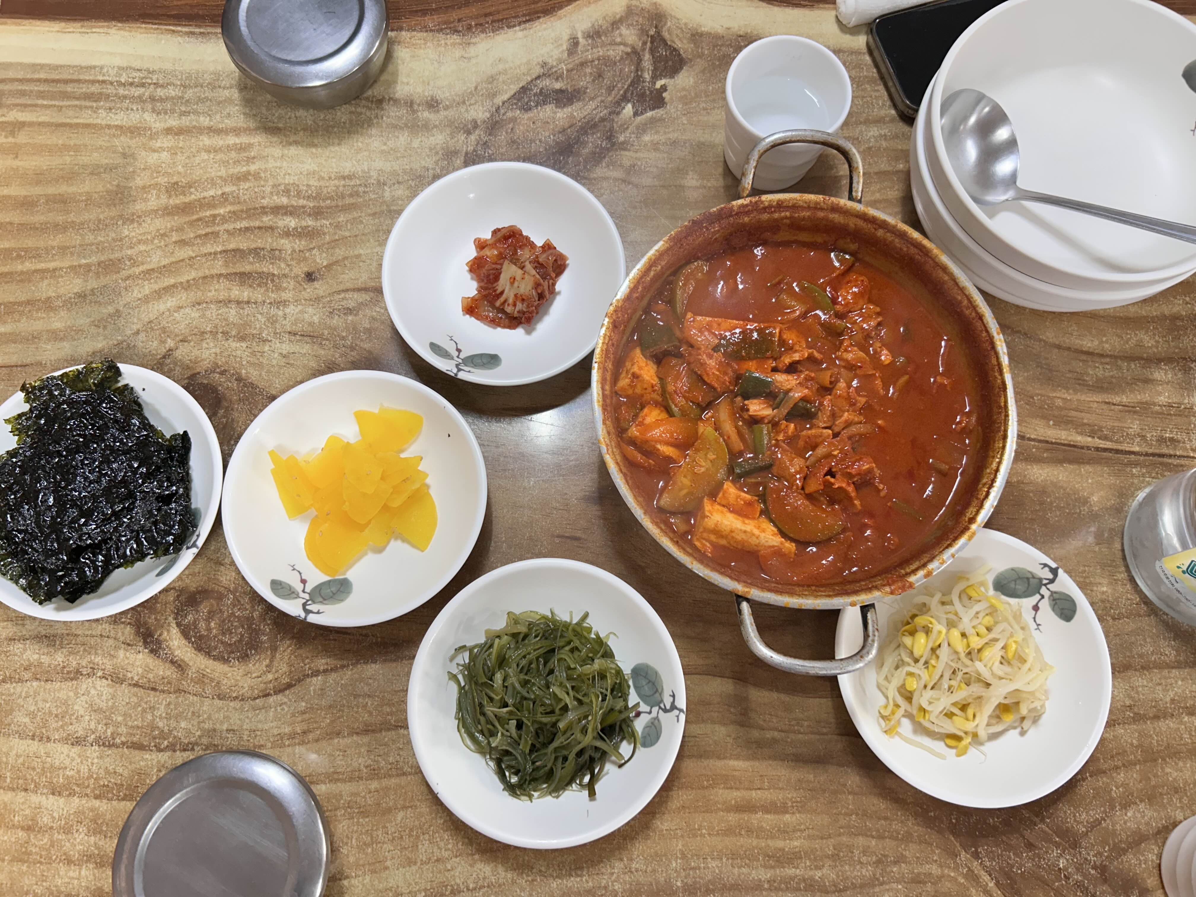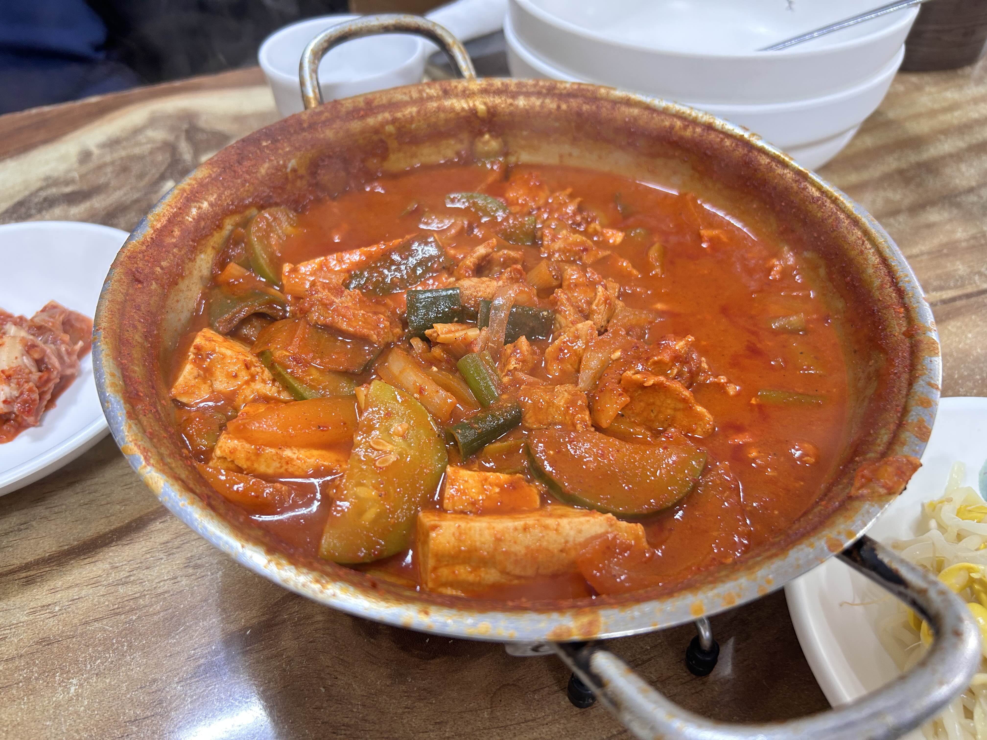 아무튼 본론으로 돌와와서 2인분 돼지찌개 양입니다. 정말 초창기에 먹었던 맛은 더 매웠는데 언젠가부터 약간 맵기가 줄어든 기분이에요. 혀가 단련이 되서 그런지 모르겠지만 그래도 맛은 여전히 맛있습니다.