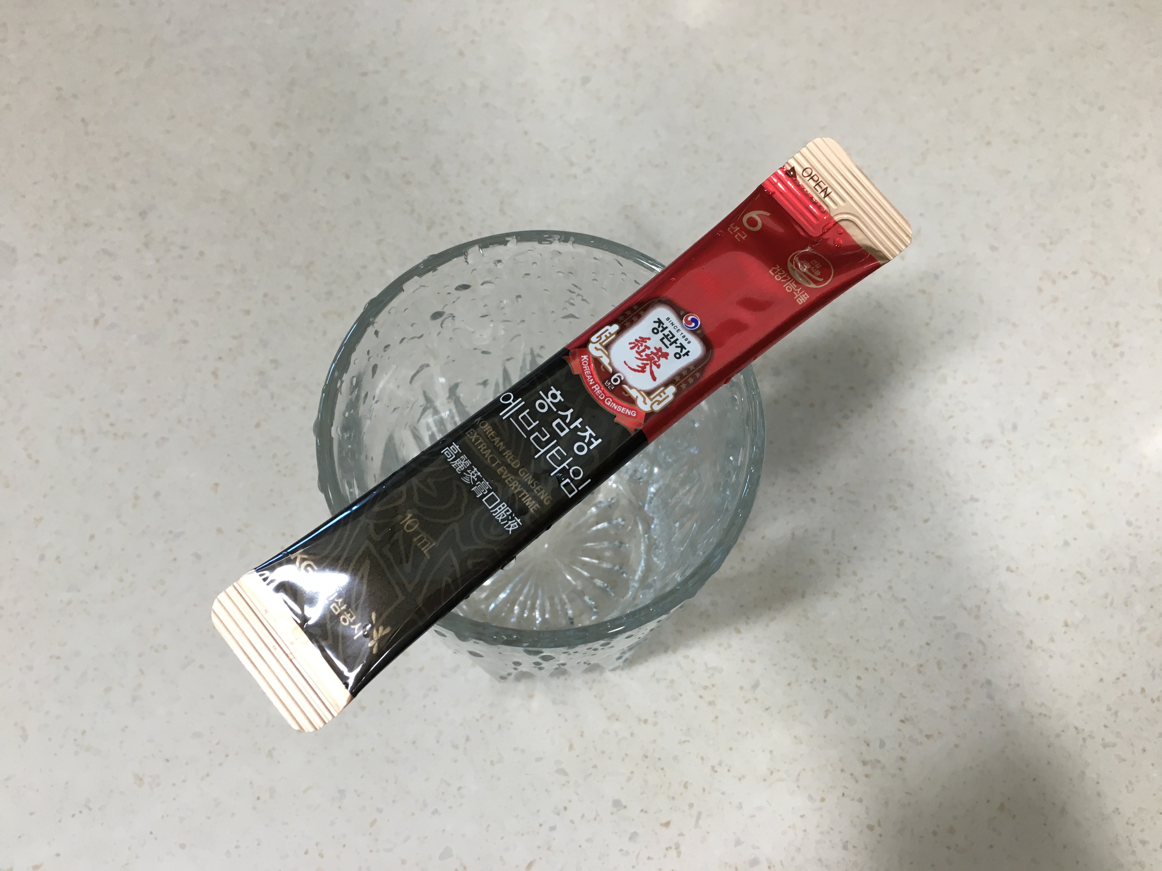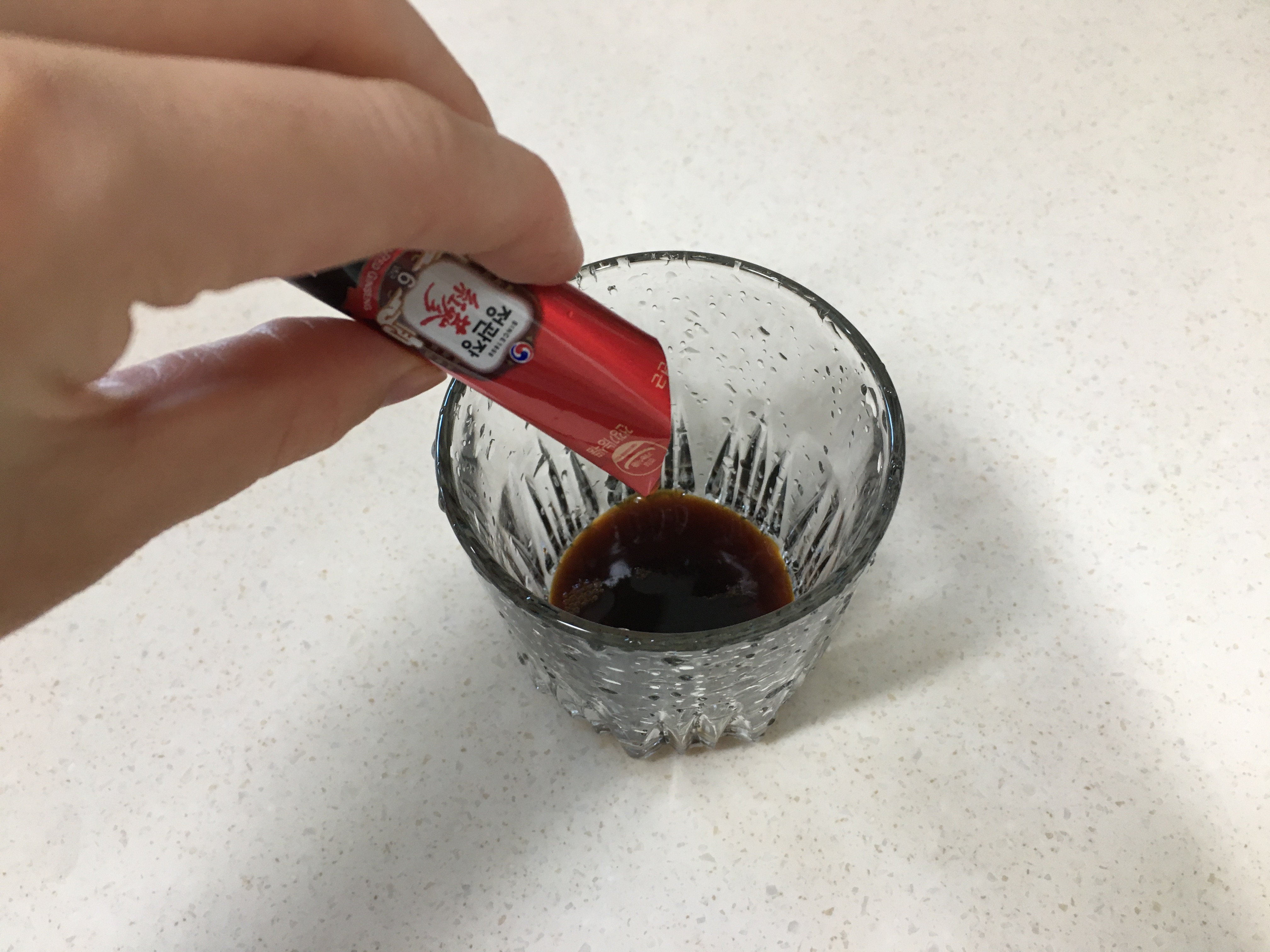 다 따르고나면 딱 저만큼의 양이 바닥에 깔리듯 나옵니다. 양은 다소 적은편이라 실망할수도있는데 맛을보면 꽤 농축된 맛이라 씁쓸하고 아주 진한홍삼액 맛이 강렬하게 납니다.