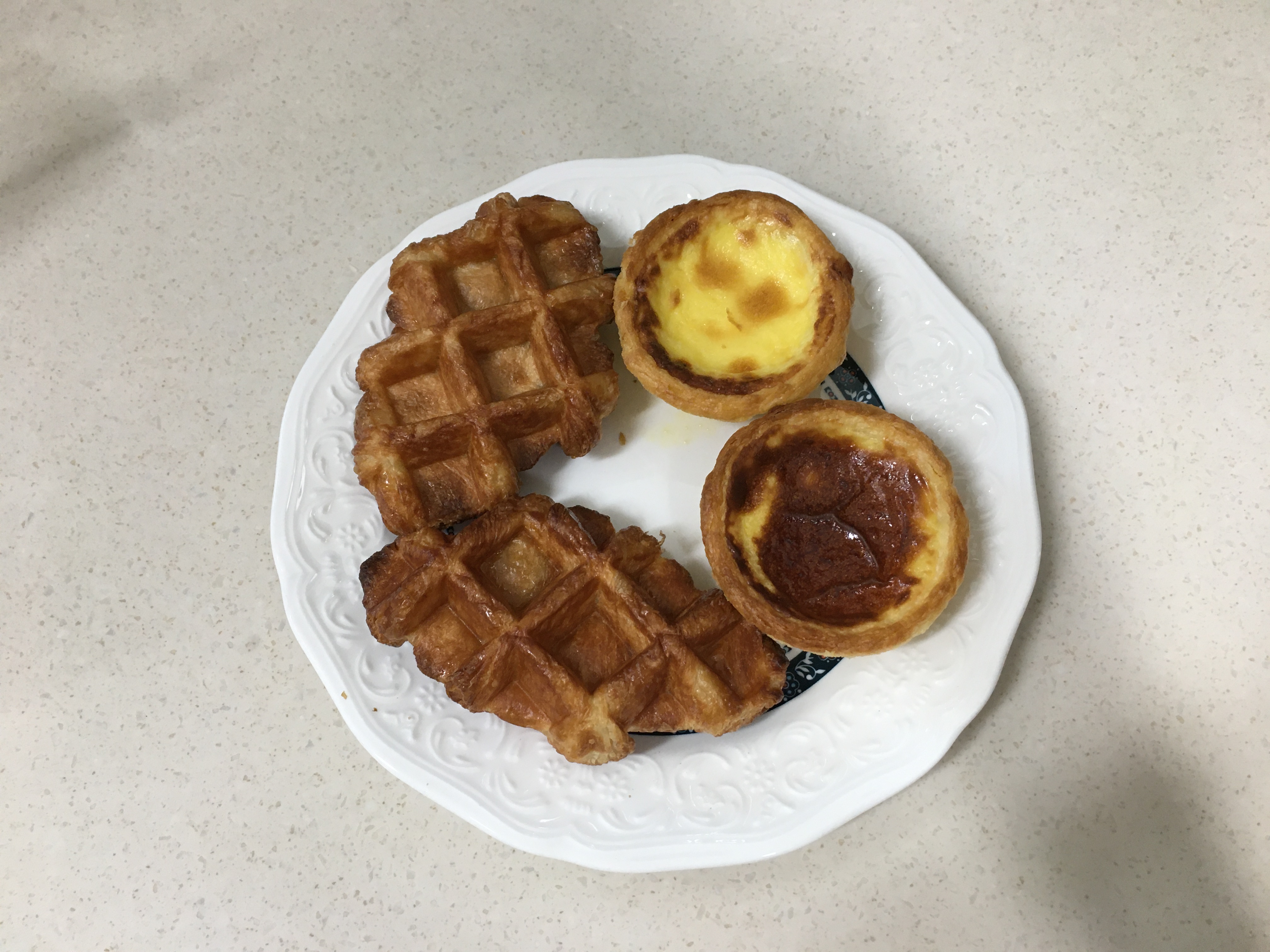 노릿노릿 사진을 보고있자니 또 먹고싶네요. 먹어보니 크로플은 너무 오버쿡이 되버렸고 에그타르트는 겉은 잘 익었는데 안이 살짝 아쉽게 찬 부분이 있었습니다. 얼른다 먹어치우고 식사를 마친후 다시 또 구워보았습니다.