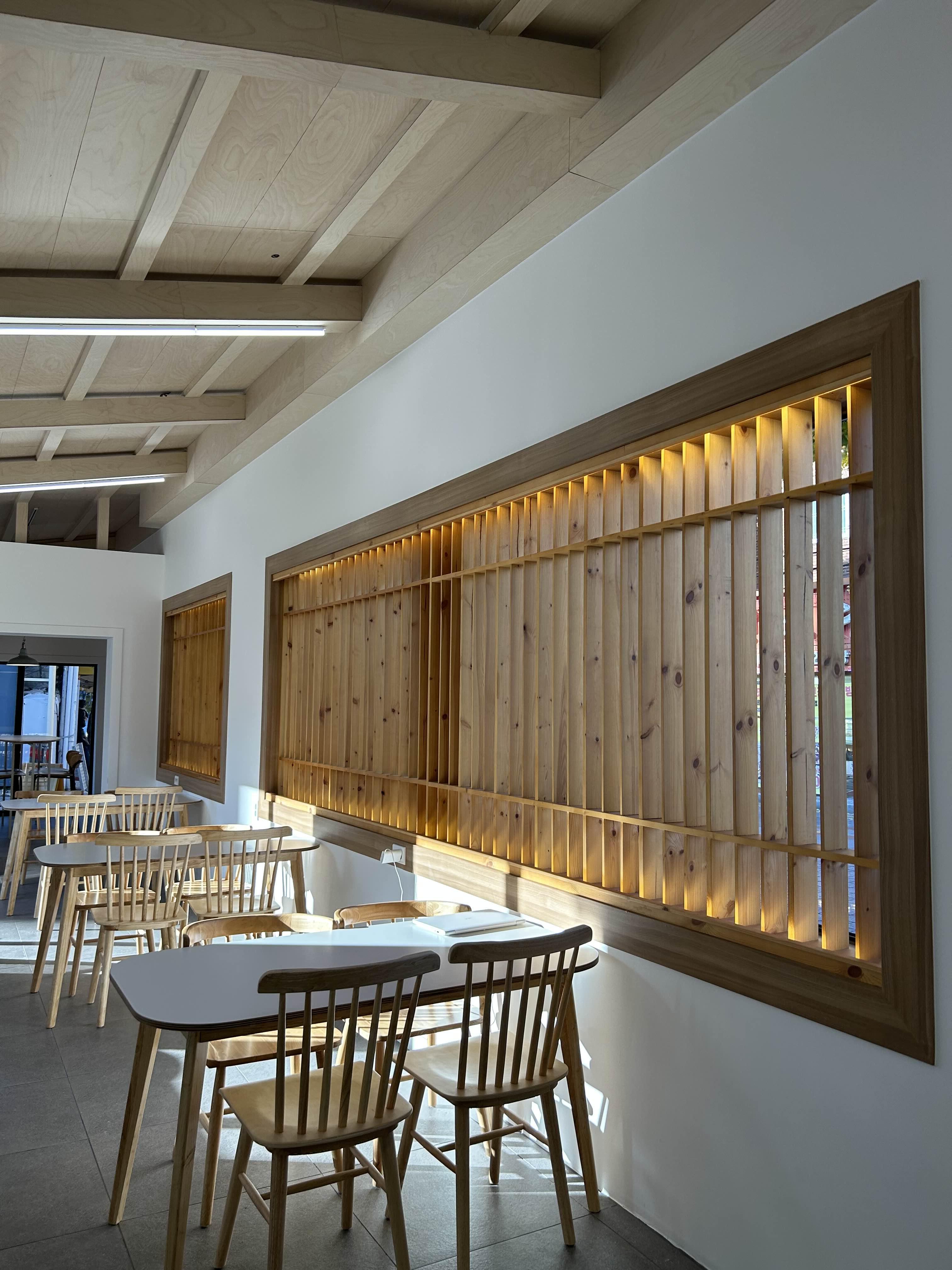 이쪽은 매장 입구쪽 자리입니다. 햇볕이 잘 들어서 따스하고 좋았습니다. 빗살무늬로 디자인된 창 디자인이 한옥 느낌이 나기도하고 친구도 와보고 너무 분위기가 좋다며 칭찬했던 자리였습니다.