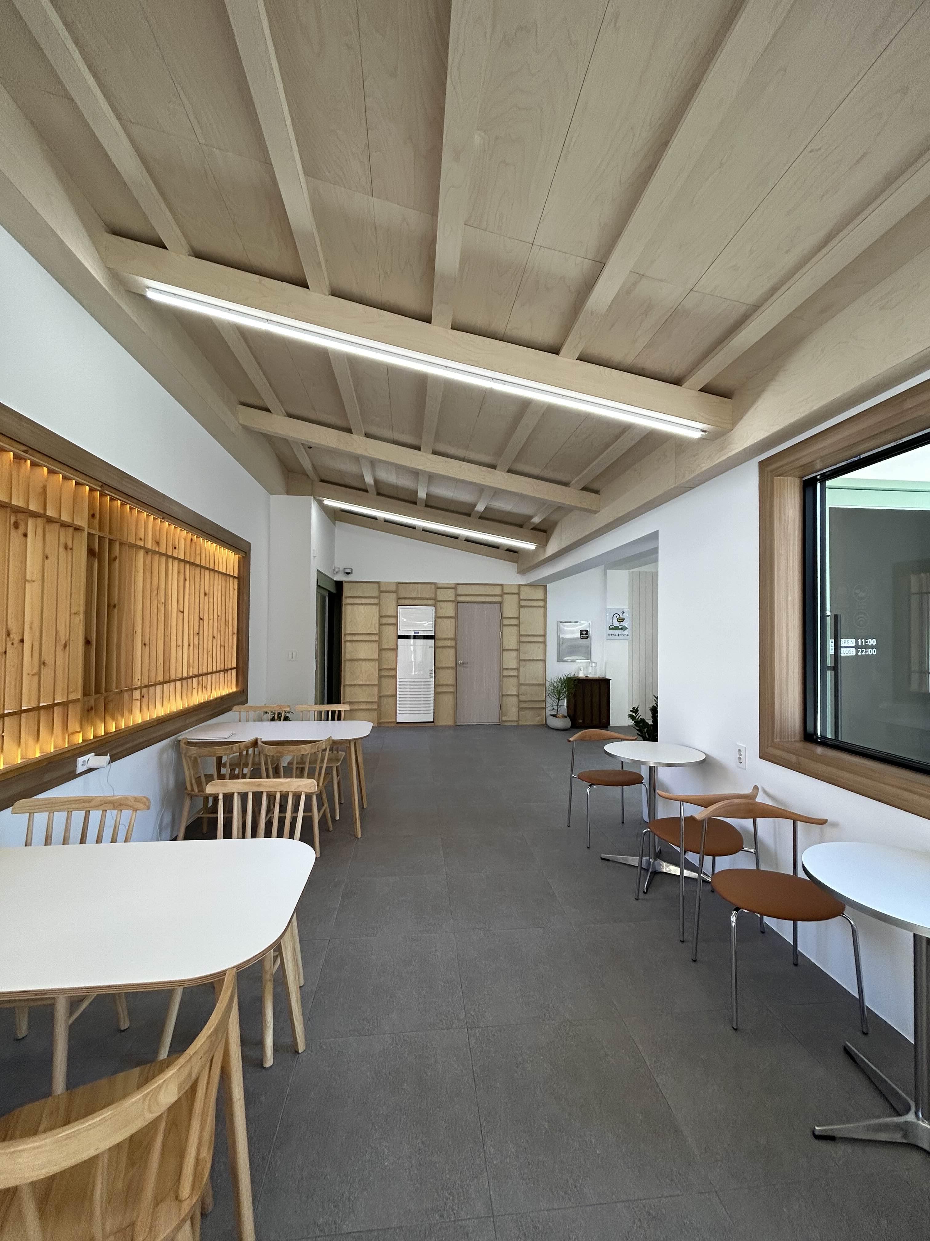 가구들과 나무가 잘 어우러져 이질감 없이 예쁜공간으로 무드가 느껴집니다. 통창이 바로 보이고 주차할 공간이 있습니다. 많이는 주차를 할 수 없지만 일찍 온다면 충분히 가능해요.