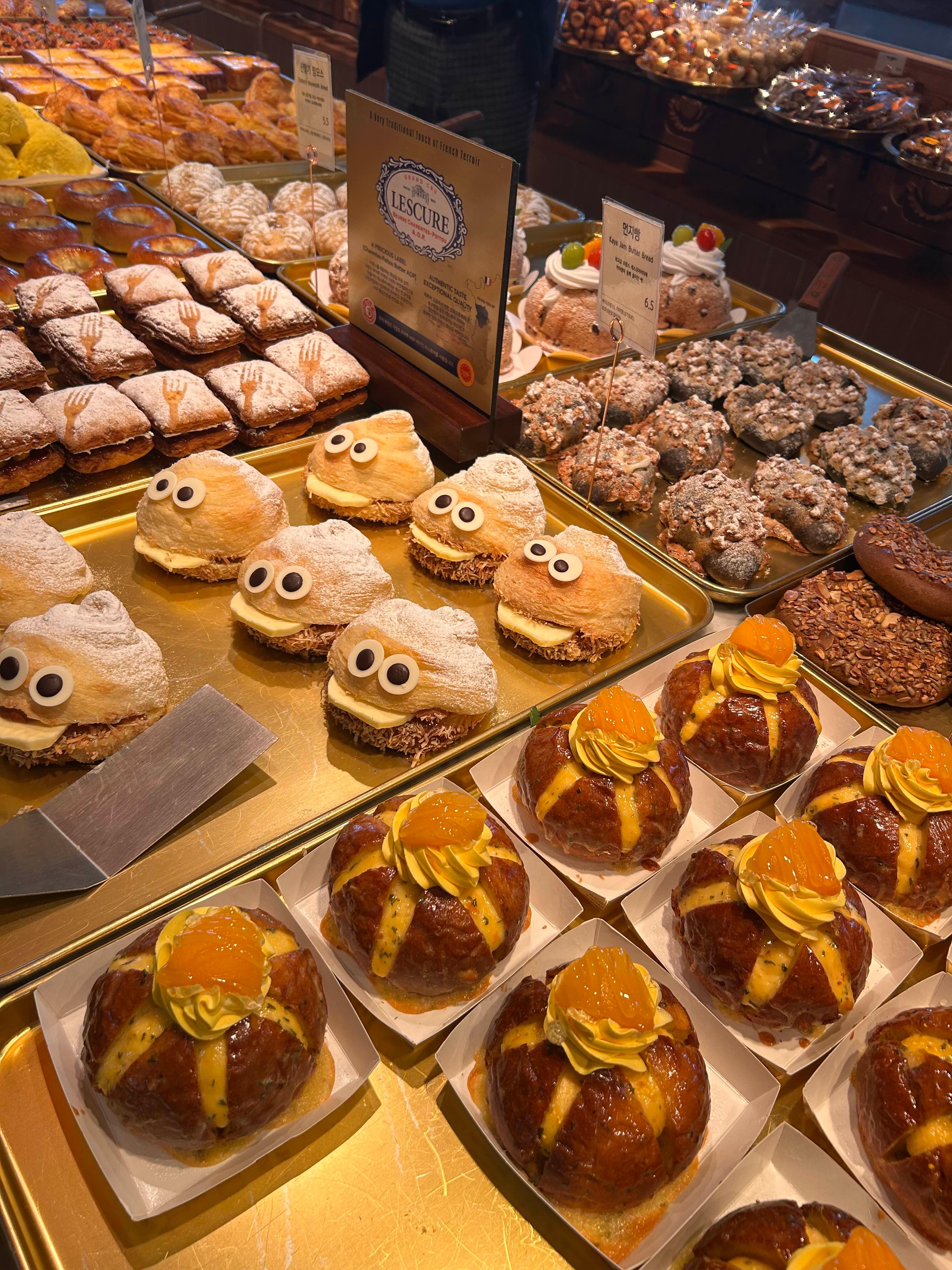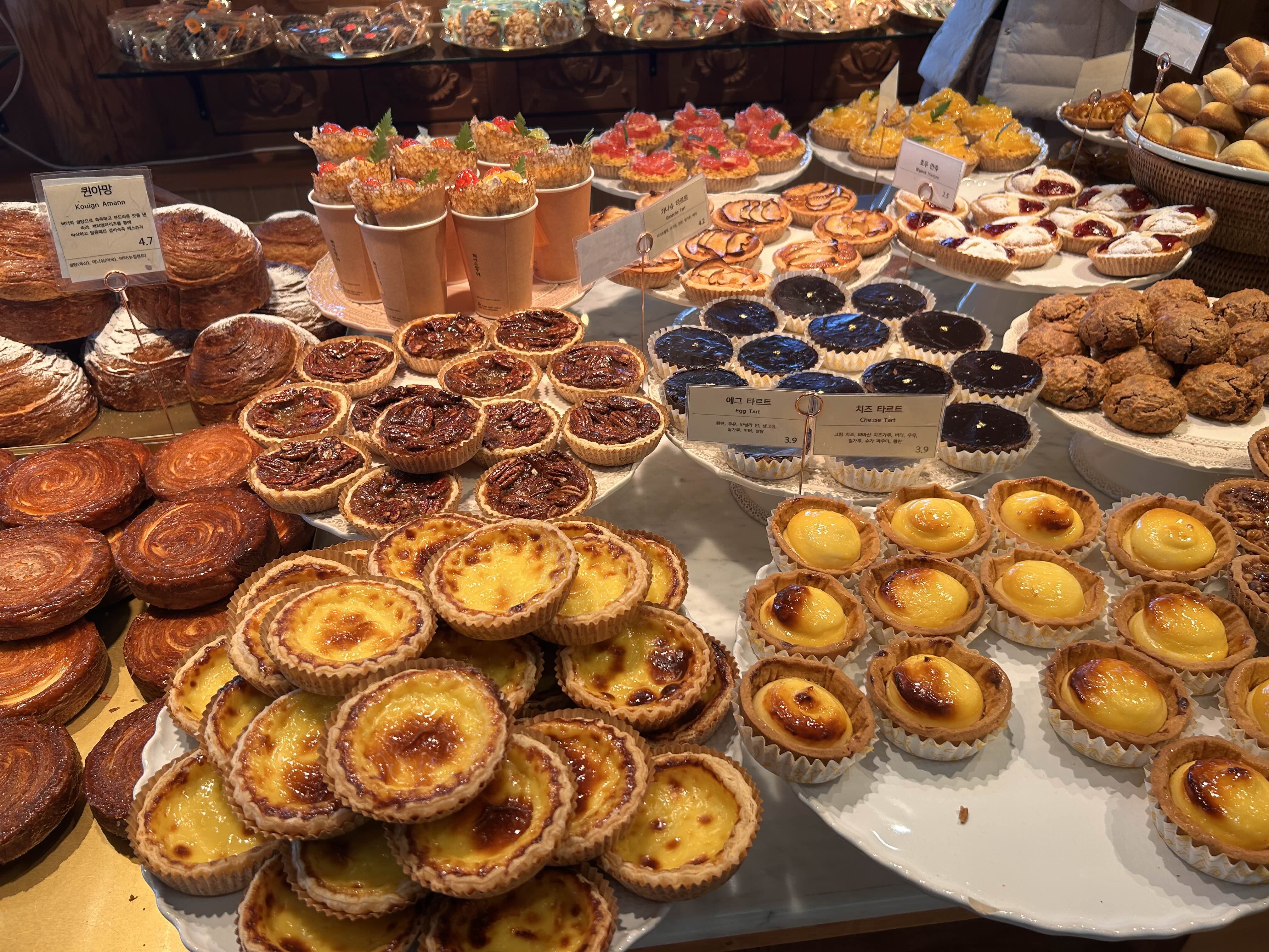 요리조리 둘러봐도 온통 빵과 쿠키들이 즐비해 있습니다. 에그타르트, 페스츄리, 케이크, 다양한 크림빵, 밤식빵, 스콘, 베이글 등등 종류가 꽤 많아서 멀 골라야할지 한참 구경만 했습니다.