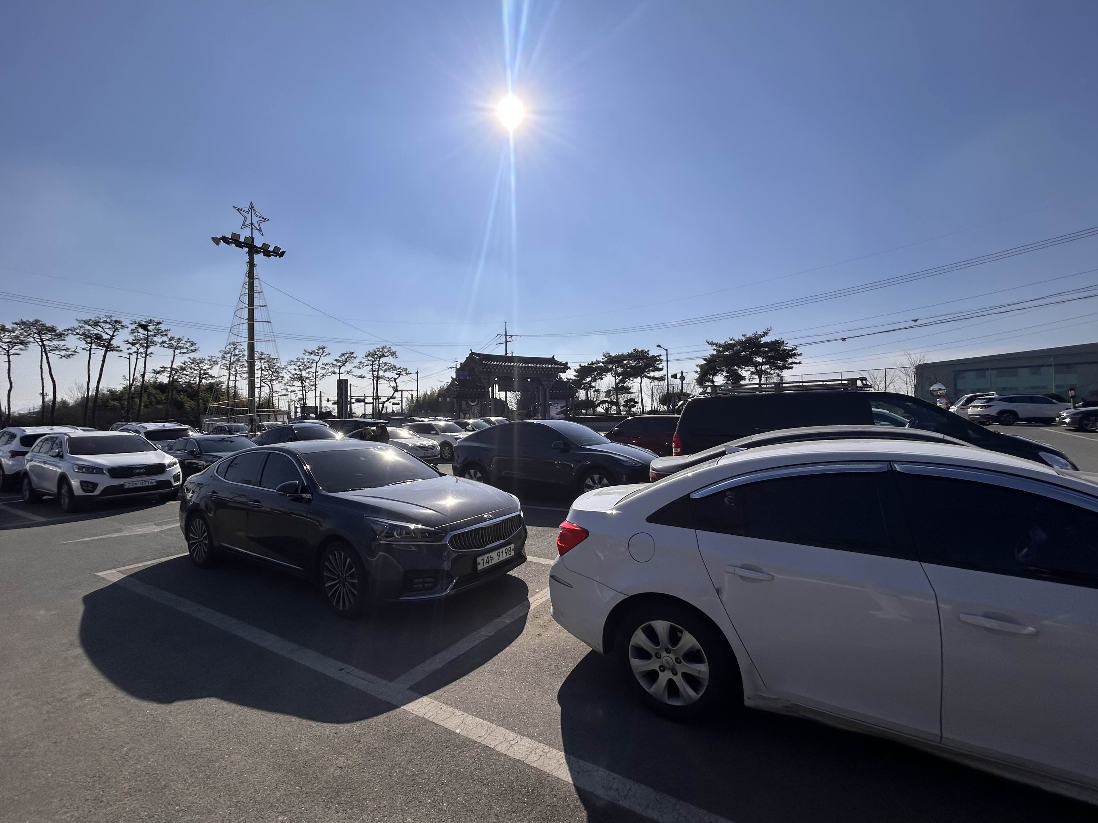 고기집과 카페가 같이 있어서인지 주차장이 꽤 넓어서 주차 걱정은 없겠더라구요. 하늘도 푸르르고 전통 기와지붕이 정말 멋드러져 보입니다.