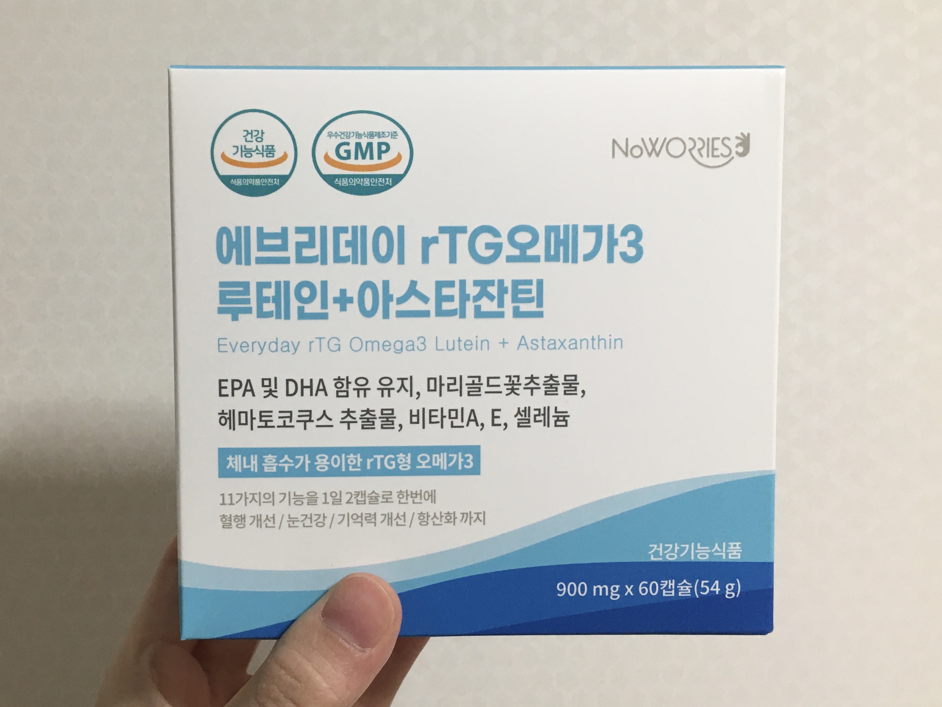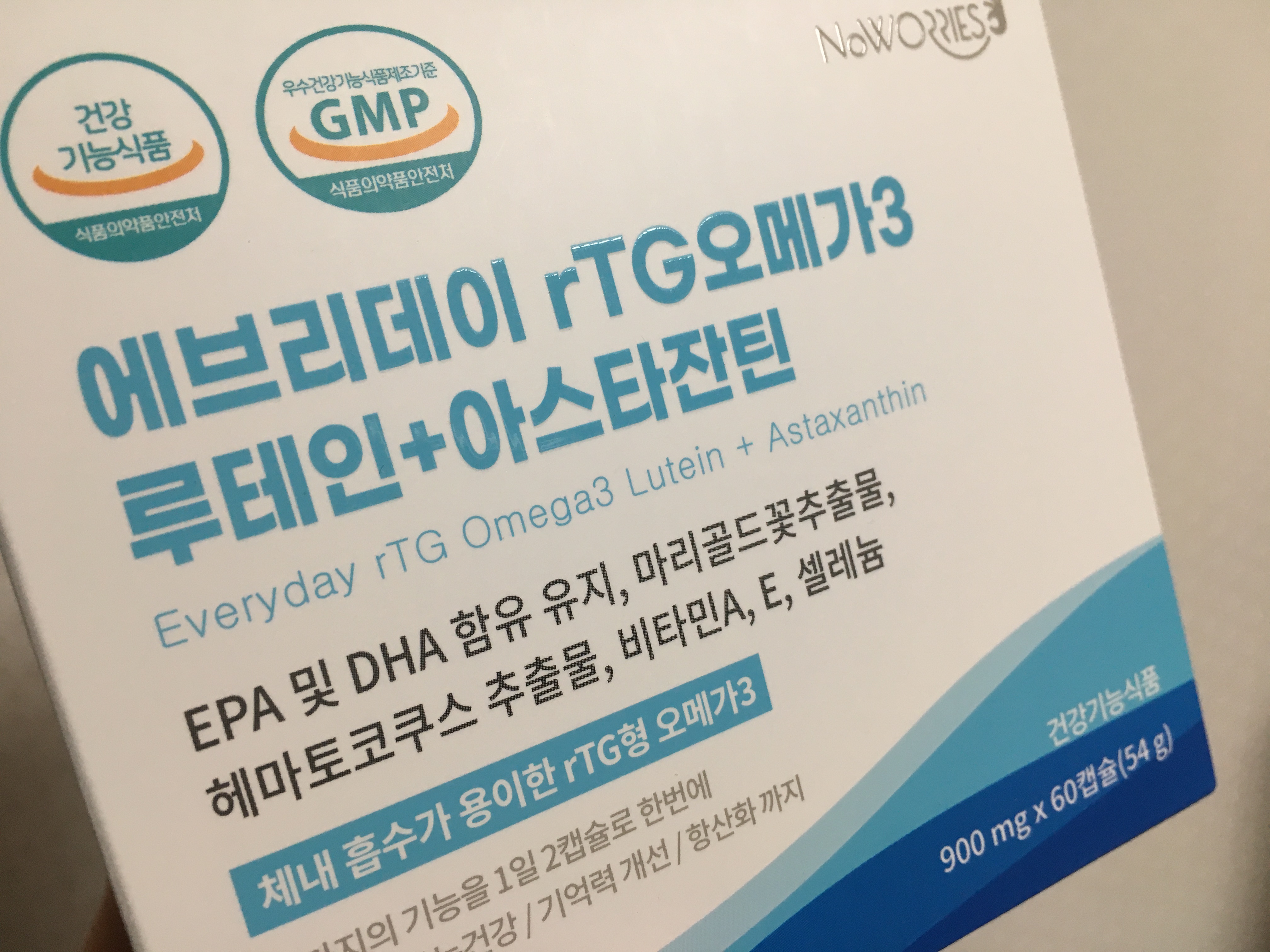 건강 기능식품이 워낙에 종류가 많다보니 선택장애가 너무 와서 한동안 놔버리고 살았습니다. 요즘 눈이 자주 침침해서 루테인을 알아보던중 마침 오메가3도 먹어야해서 한알로 해결할수 있는 제품을 구매했습니다. 노워리즈에서 나온 제품이고 제가 딱 원하던 성분이 골고루 들어있어 만족한 제품입니다.