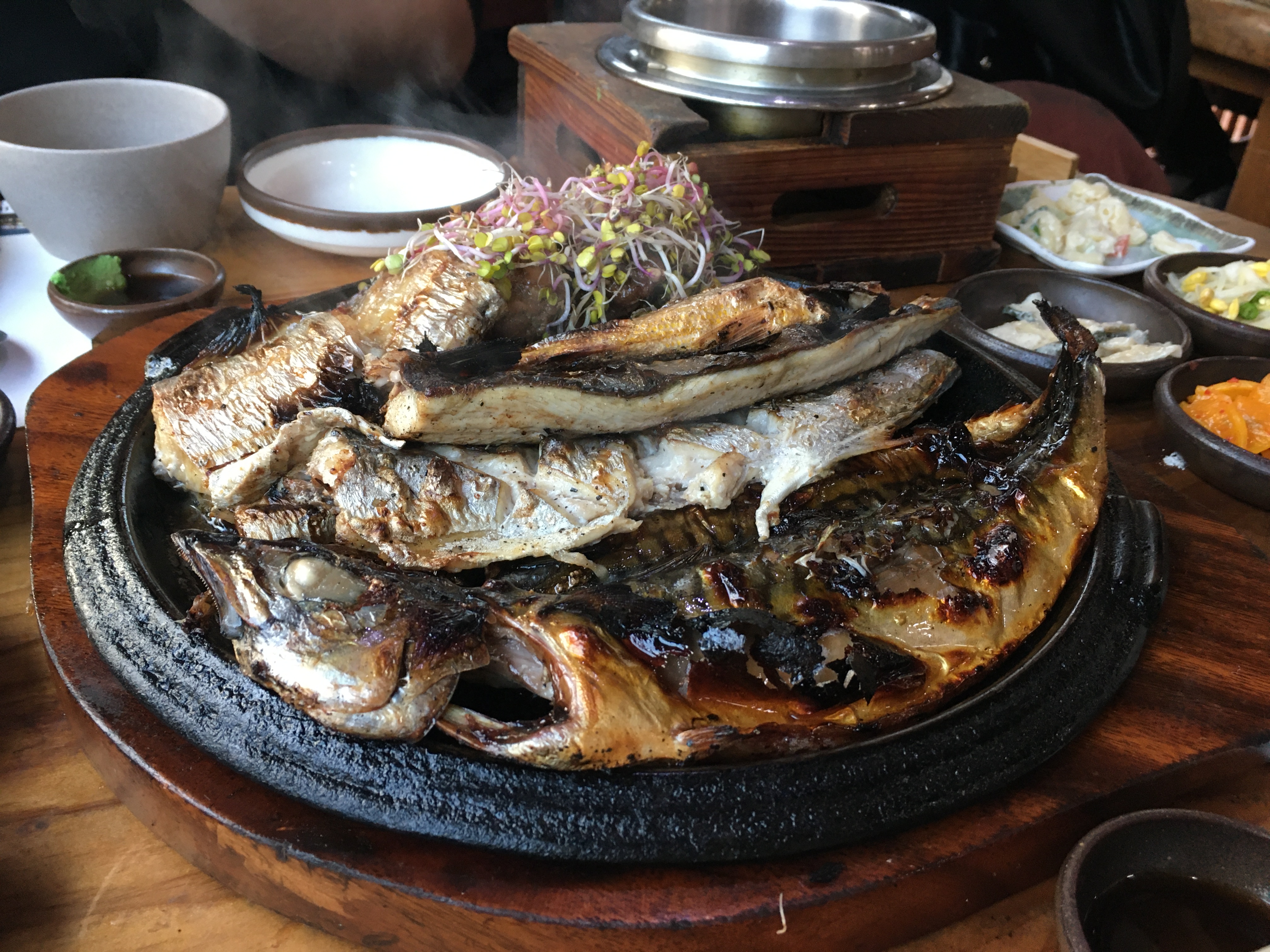 정말 우와 라는 소리가 절로 나오는 양입니다. 생선이 엄청 잘 구워져서 나오는데 향도 너무좋았습니다. 고등어, 도루묵, 갈치 그리고 이름모를 생선이랑 무순에 덮여있는 떡갈비까지 푸짐합니다.